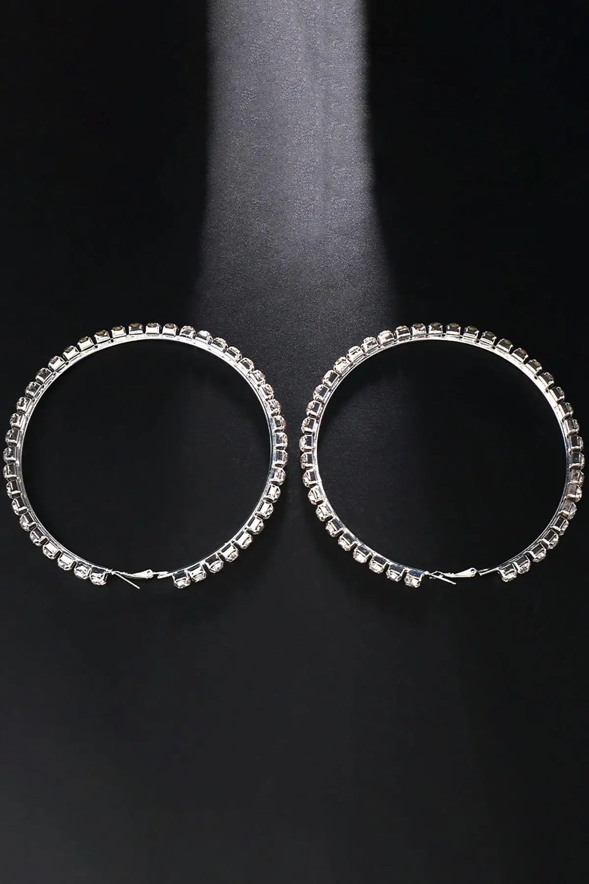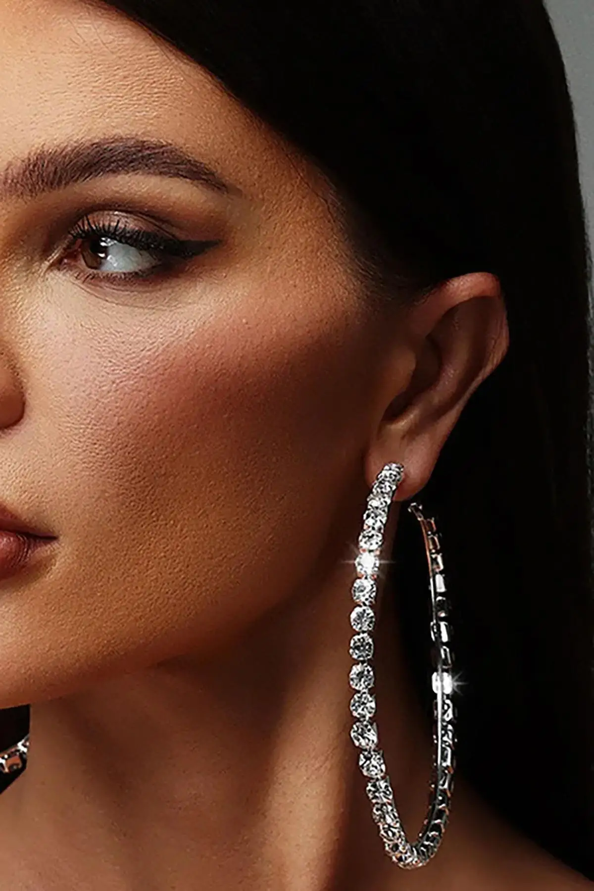 Gümüş Renk Taş Detaylı Halka Küpe 80Mm (Çift)