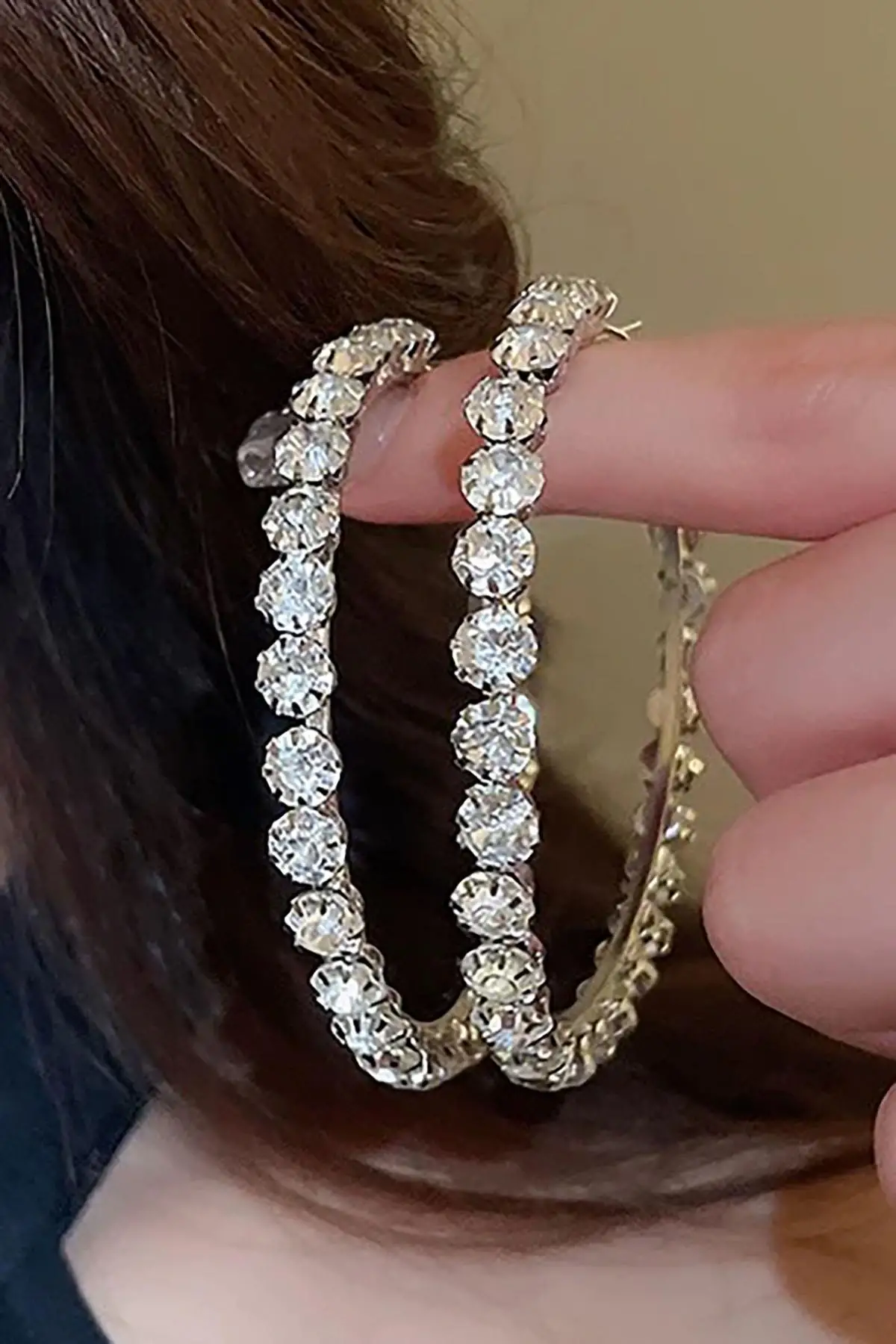 Gümüş Renk Taş Detaylı Halka Küpe 40Mm (Çift)