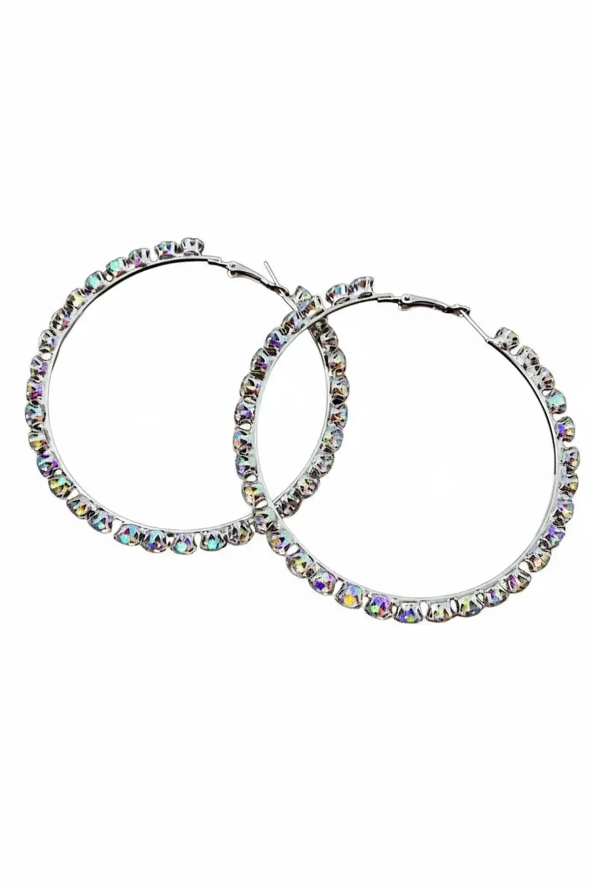 Gümüş Renk Taş Detaylı Halka Küpe 40Mm (Çift)