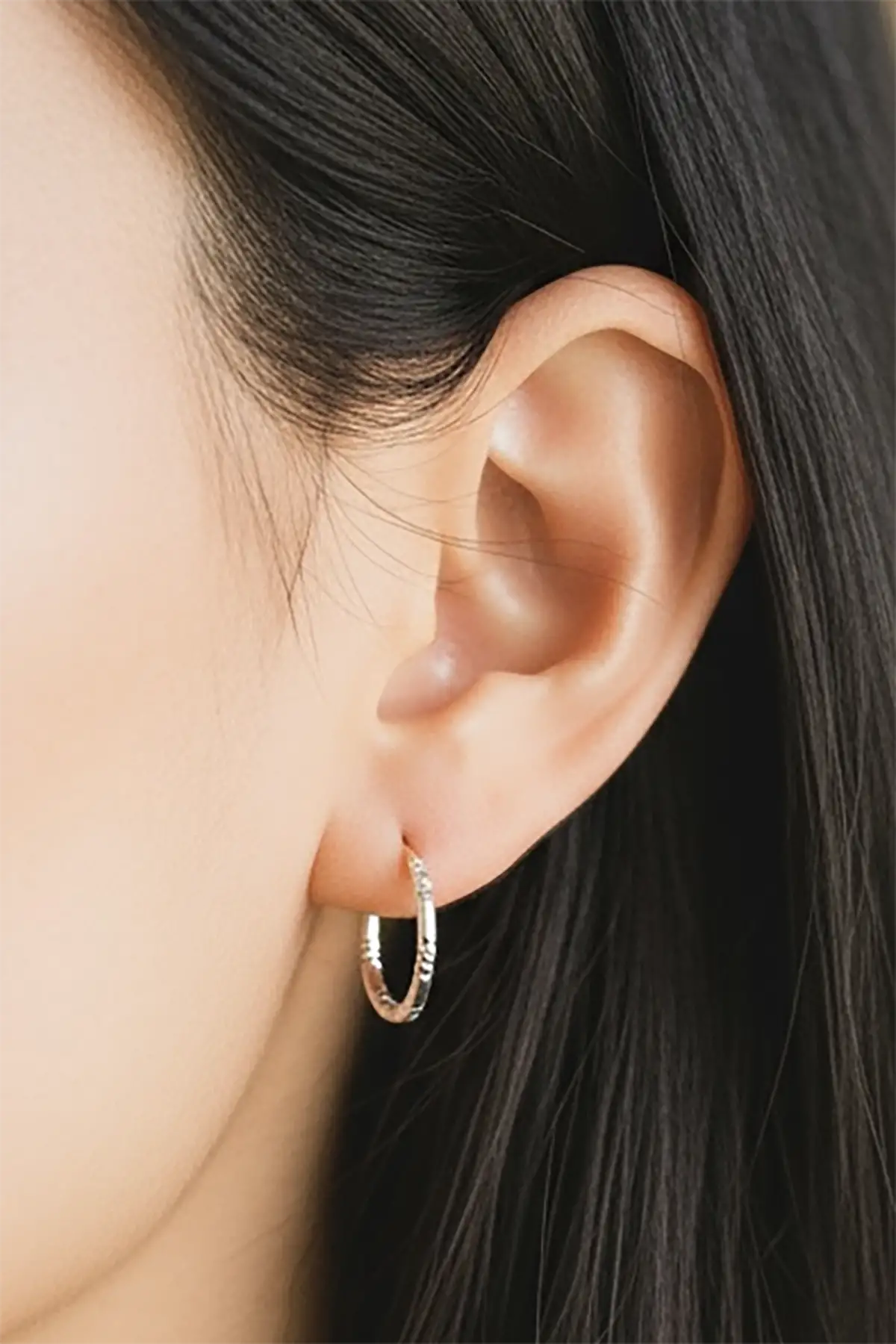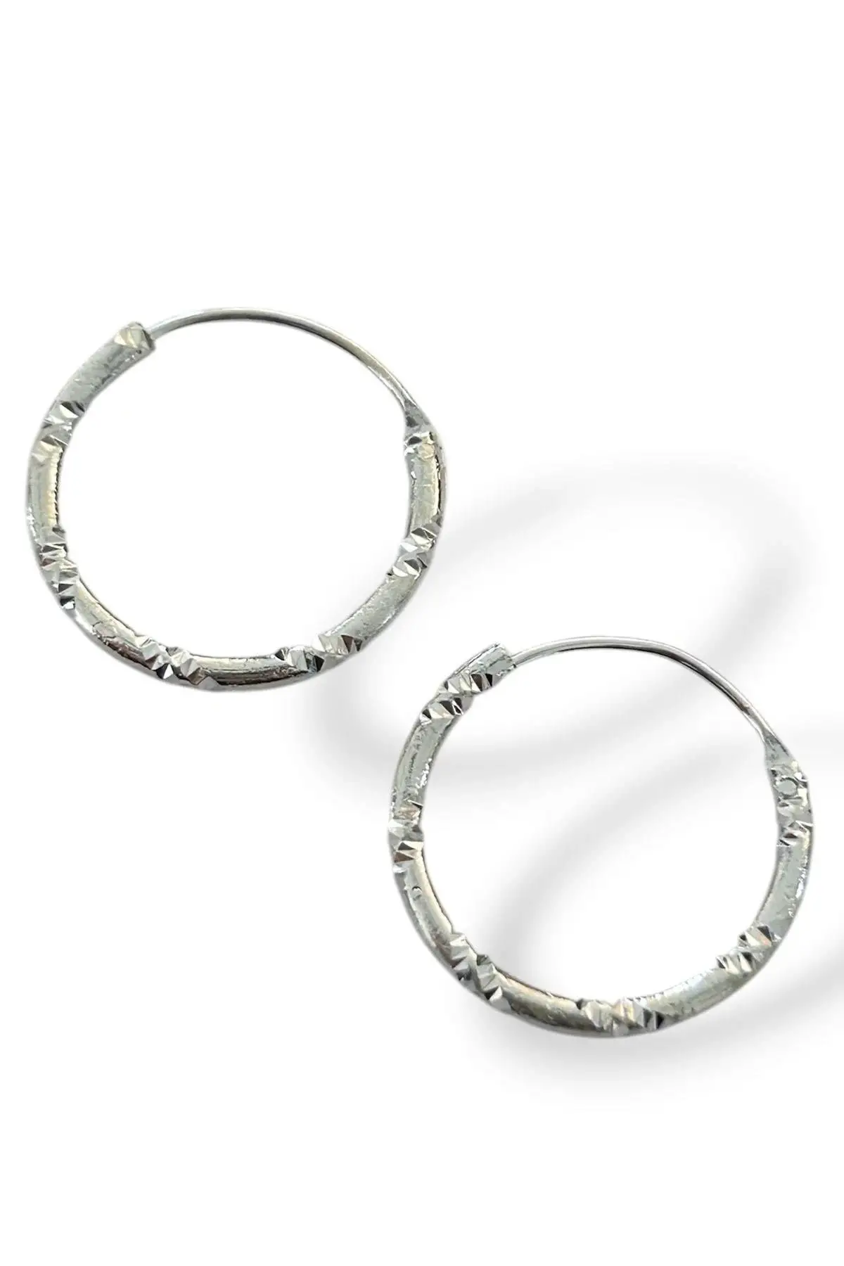 Gümüş Renk Taş Detaylı Halka Küpe (Çift)