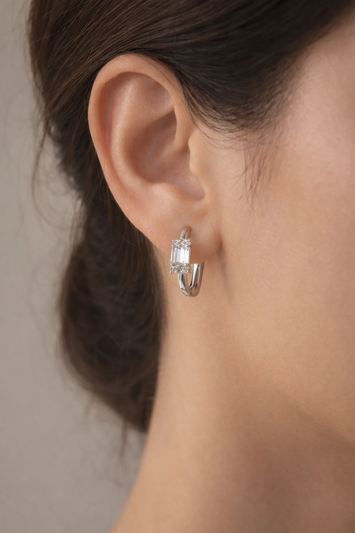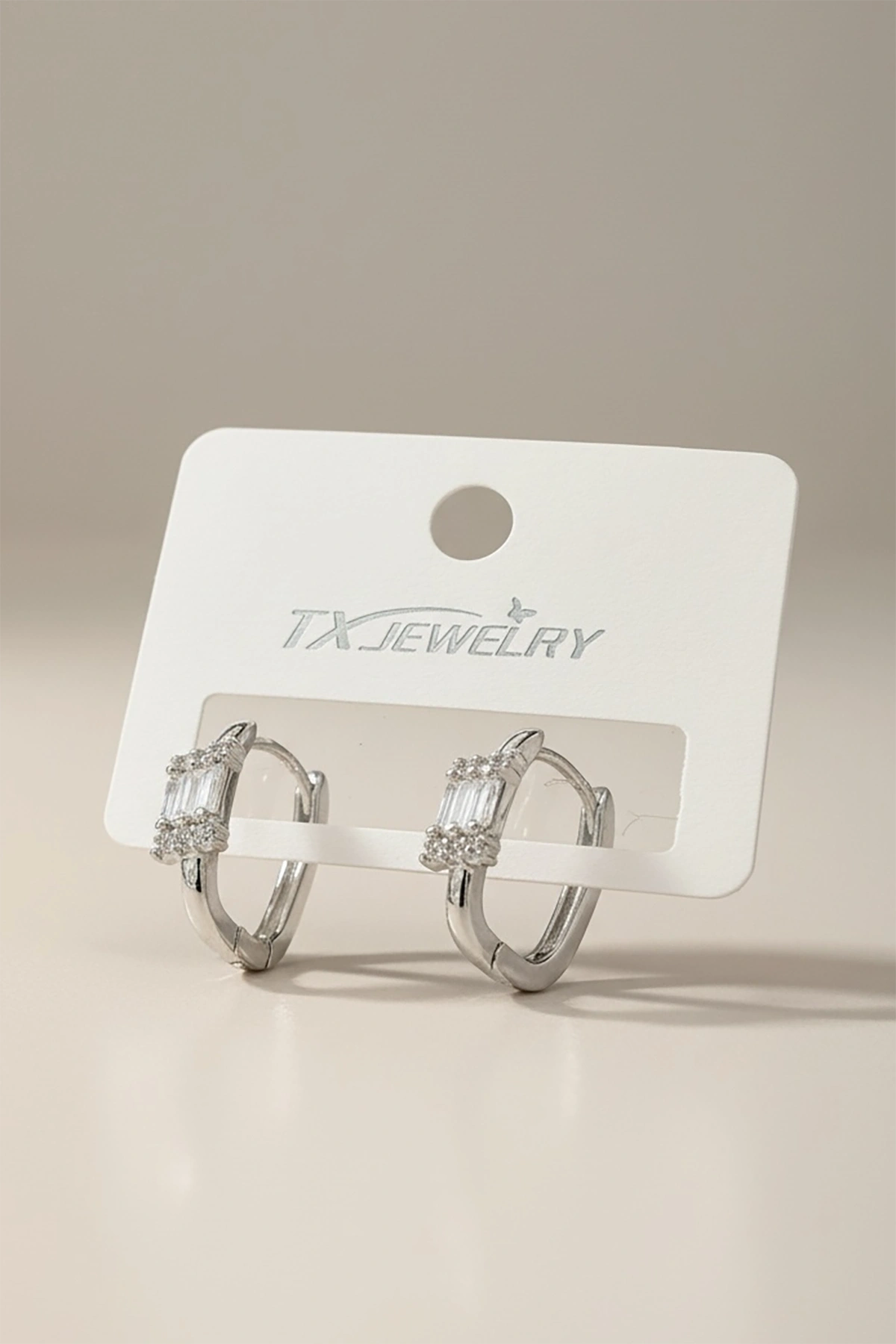 Gümüş Renk Taş Detaylı Halka Tx Küpe (Çift)