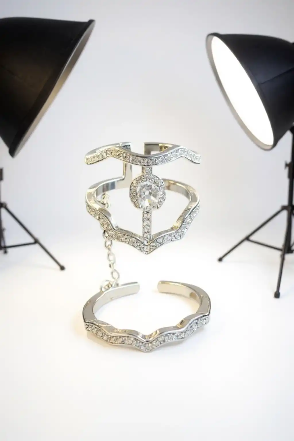 Gümüş Renk Taş Detaylı İkili Ayarlanabilir Yüzük