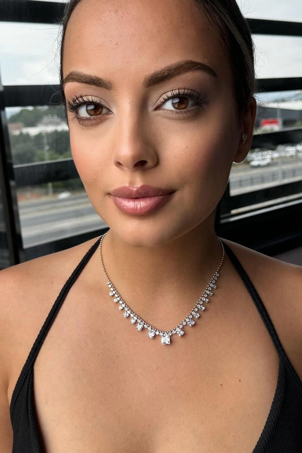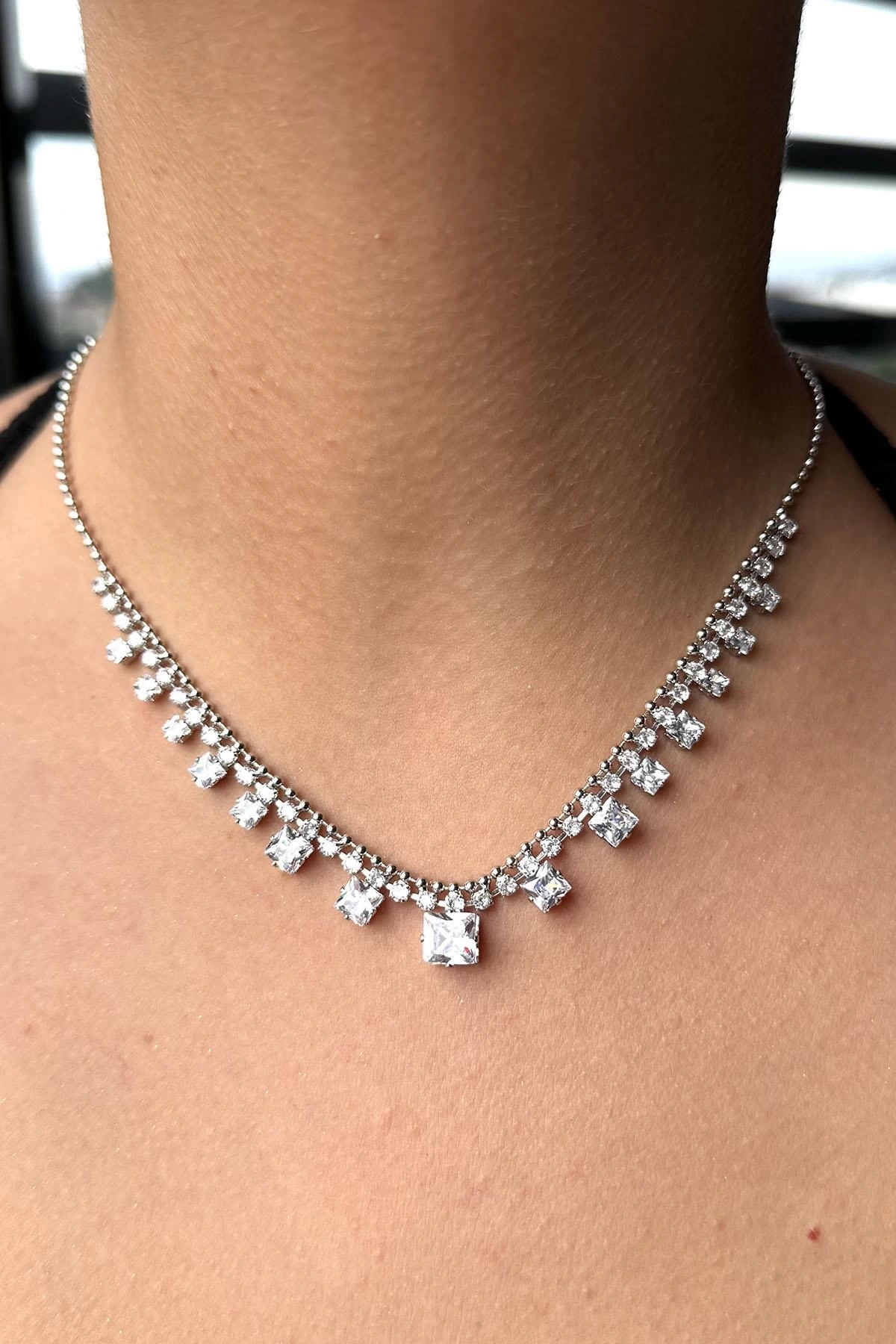 Gümüş Renk Taş Detaylı Kolye