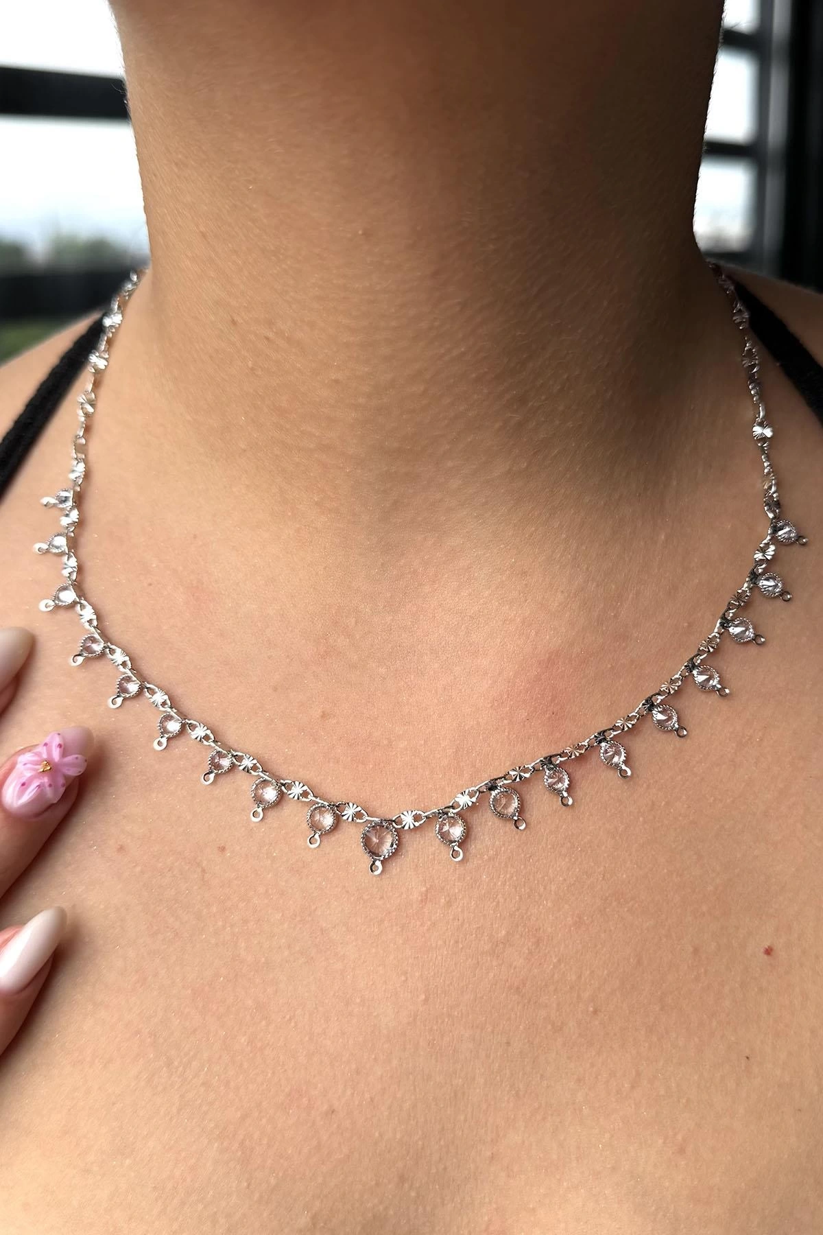 Gümüş Renk Taş Detaylı Kolye