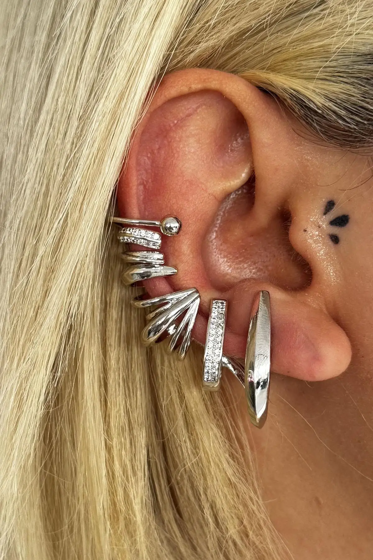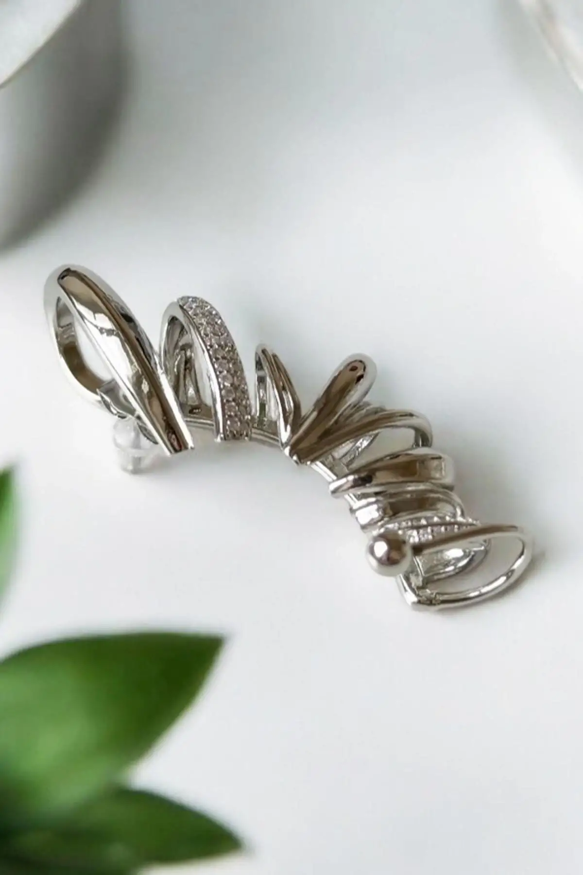 Gümüş Renk Taş Detaylı Kulak Aksesuarı (Tek)