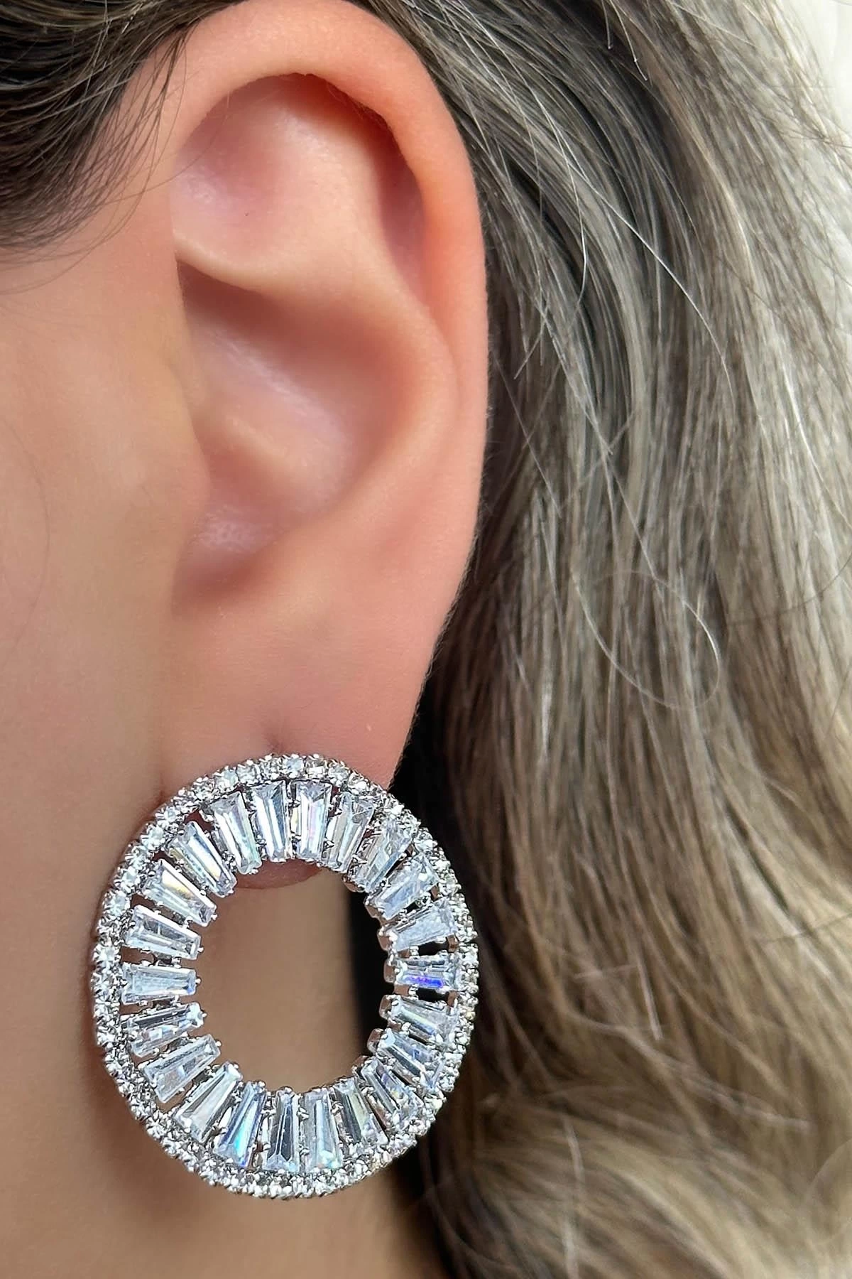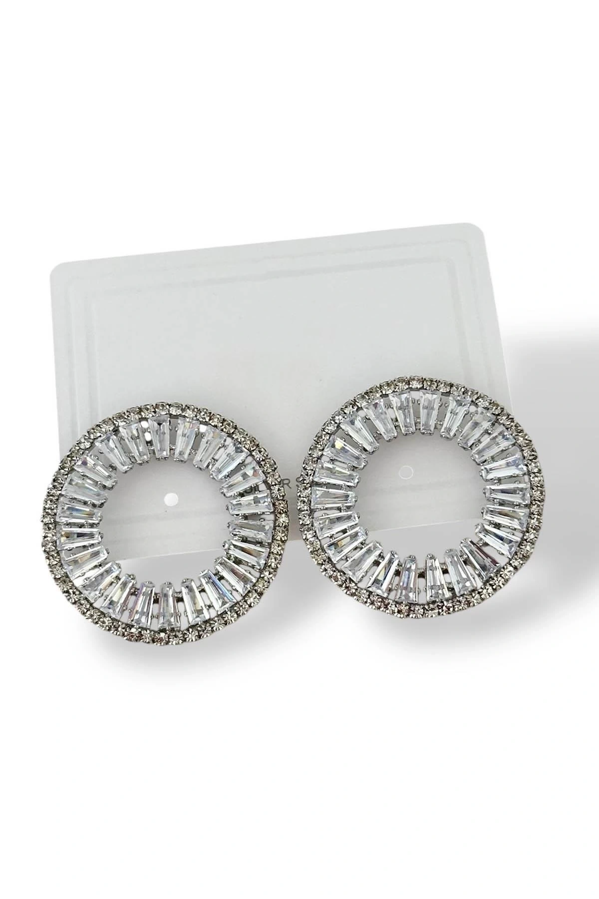 Gümüş Renk Taş Detaylı Küpe (Çift)