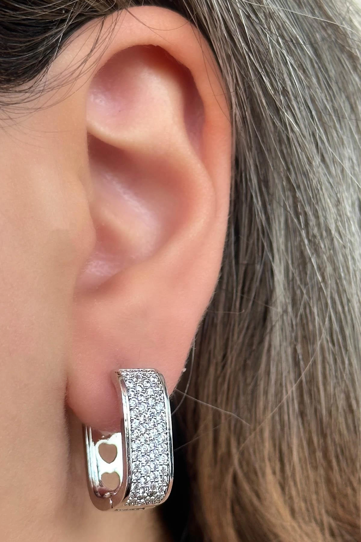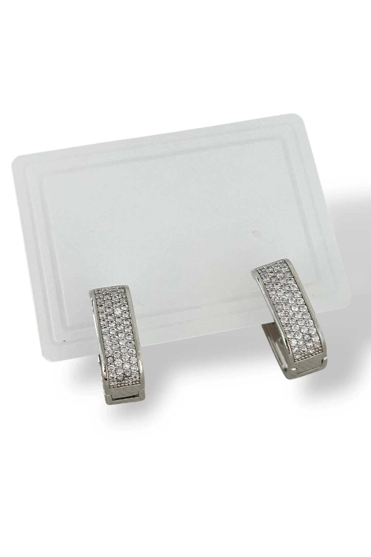 Gümüş Renk Taş Detaylı Küpe (Çift)