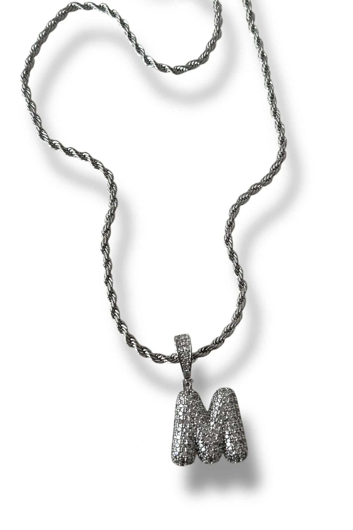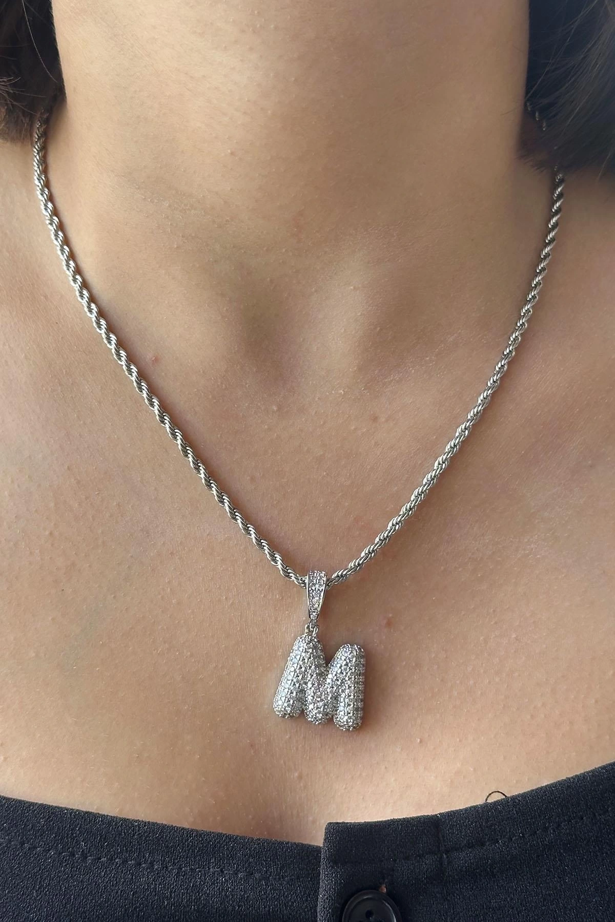 Gümüş Renk Taş Detaylı M Harfli Kolye