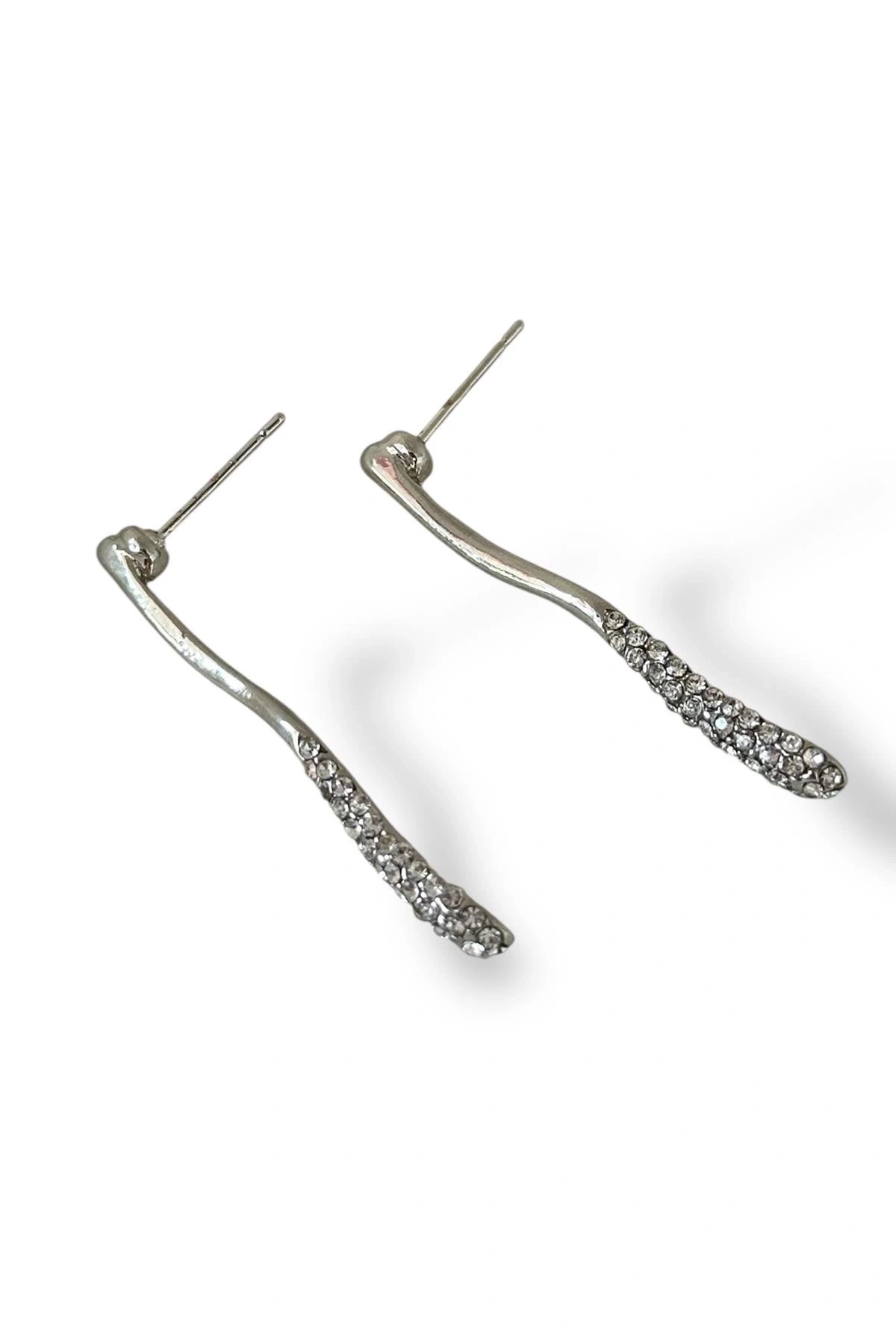 Gümüş Renk Taş Detaylı Metal Küpe (Çift)