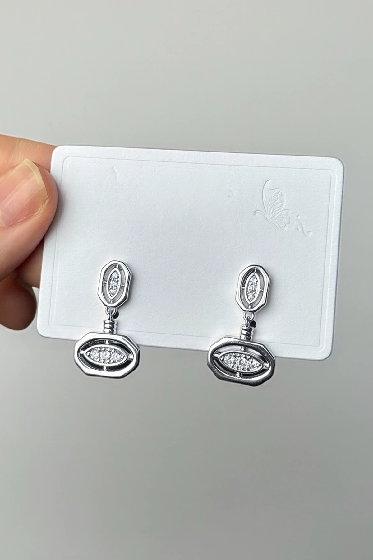 Gümüş Renk Taş Detaylı Metal Küpe (Çift)