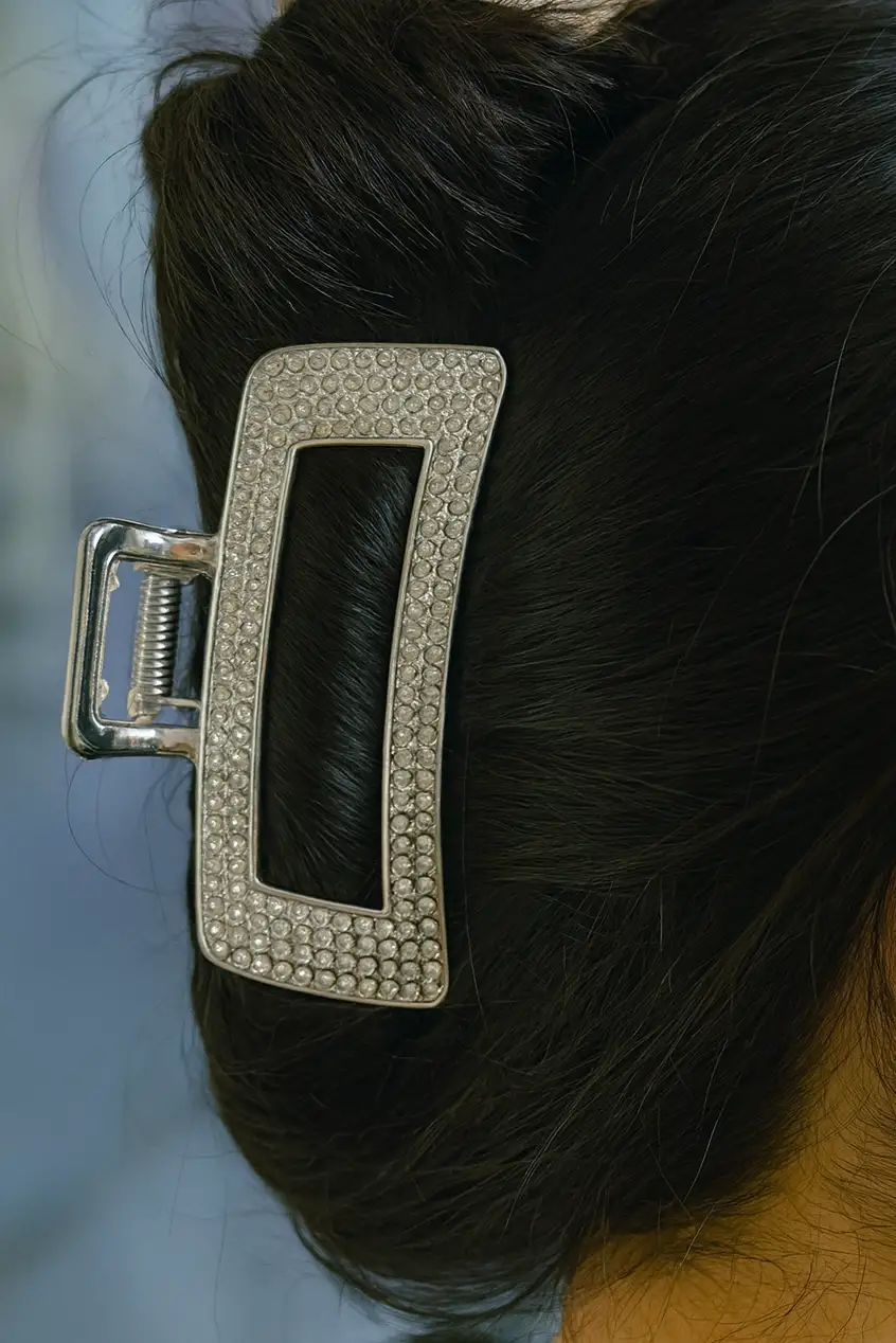 Gümüş Renk Taş Detaylı Metal Mandal Toka