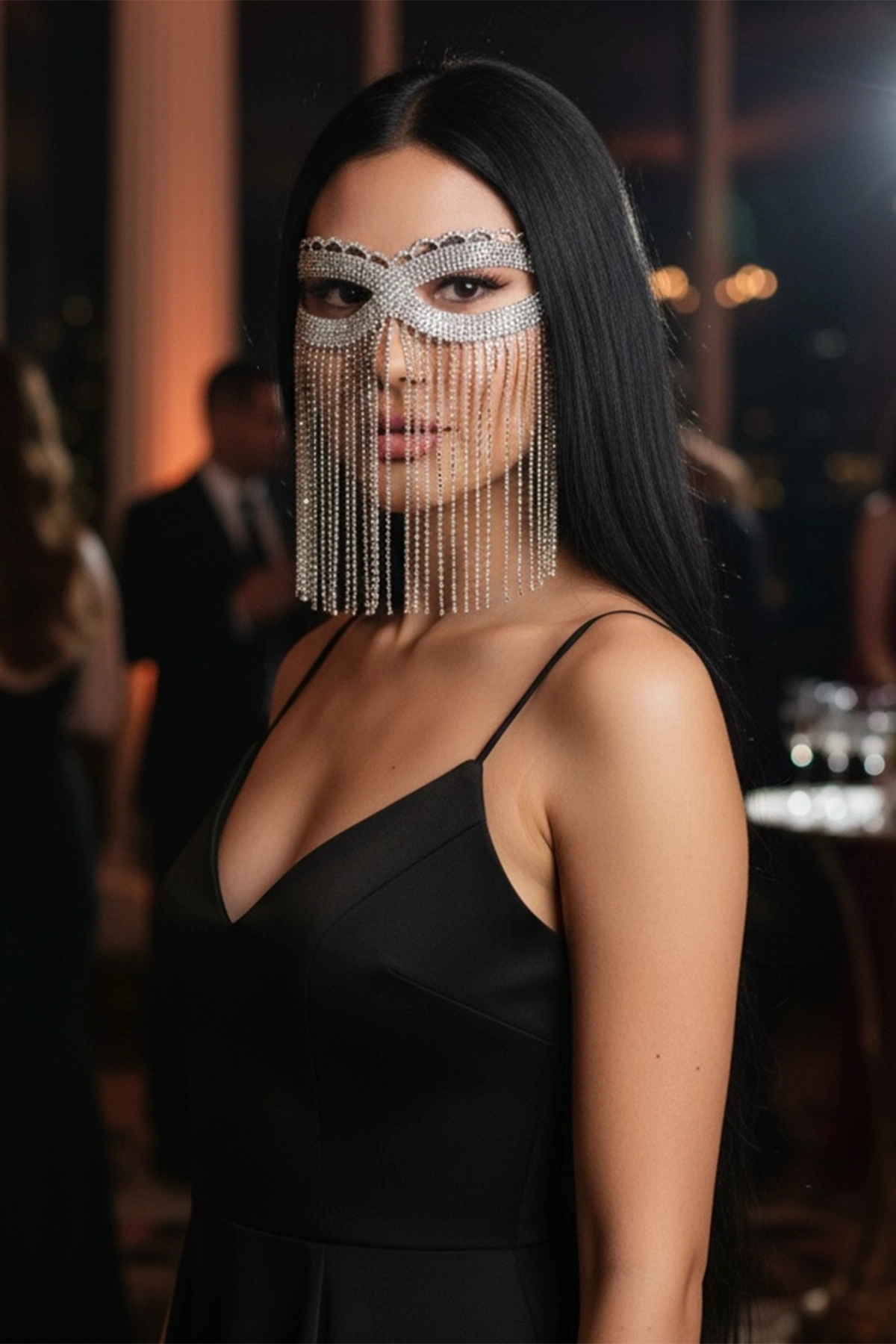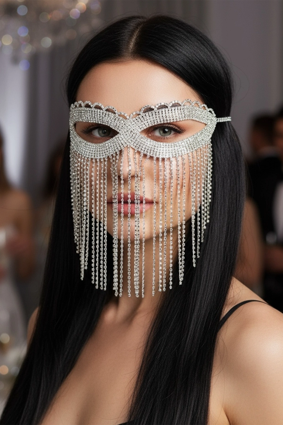 Bu taşlı yüz party maskesi, parti gecelerinde parıltınızı ve çekiciliğinizi artırmak için tasarlanmıştır. Zarif taş detayları ile süslenmiş olan bu maskenin altındaki yüzünüz, partinin en göz alıcı görüneni olacak.