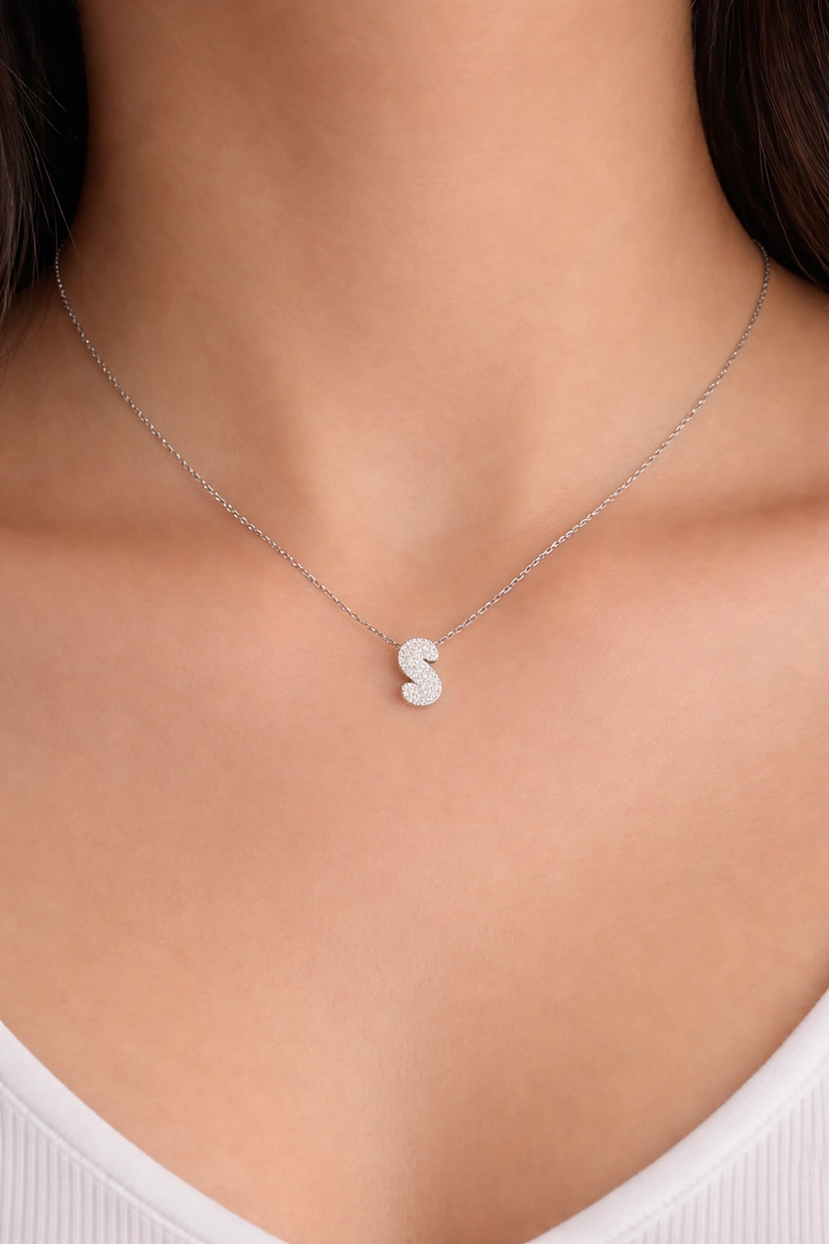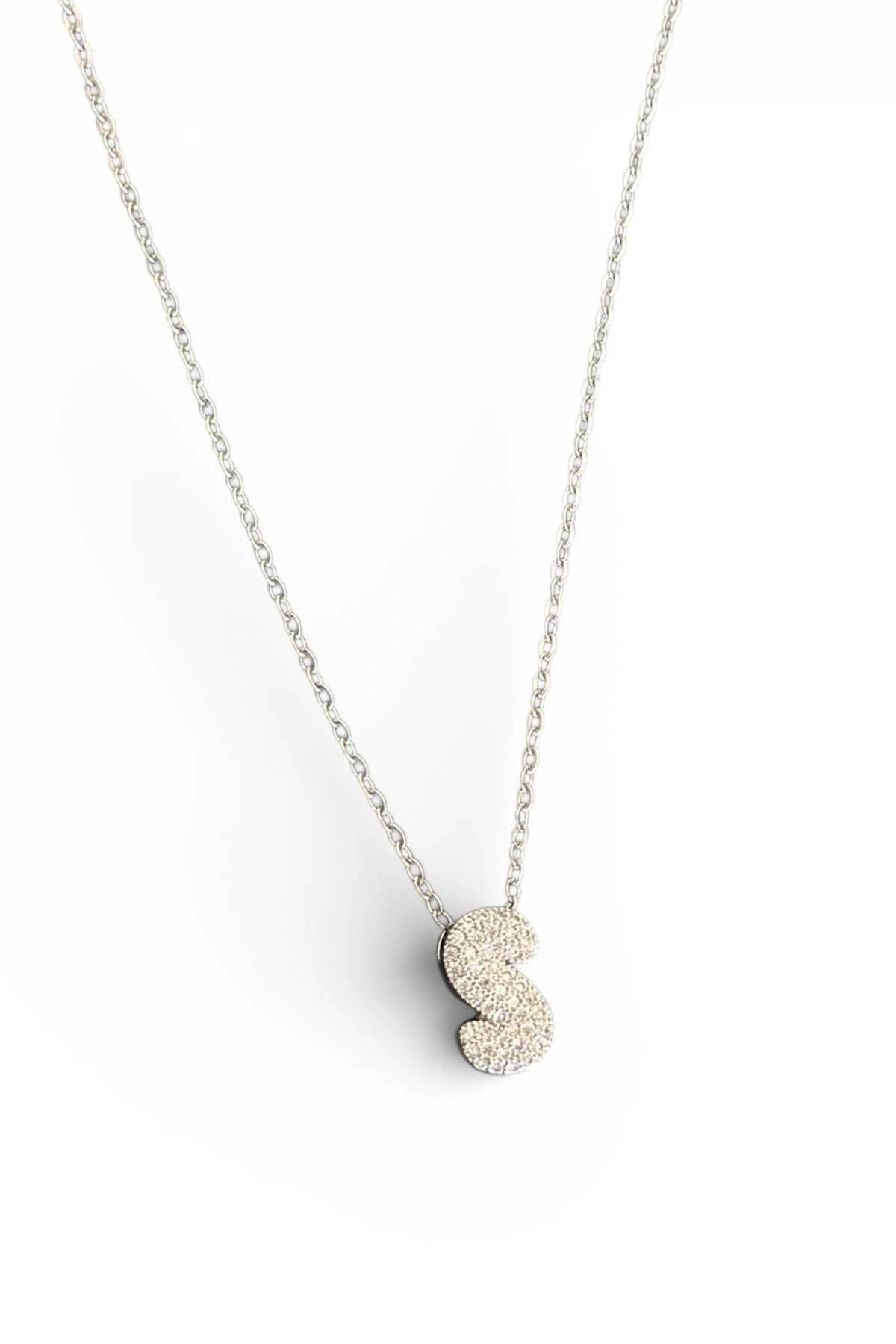 Gümüş Renk Taş Detaylı S Harfli Çelik Kolye