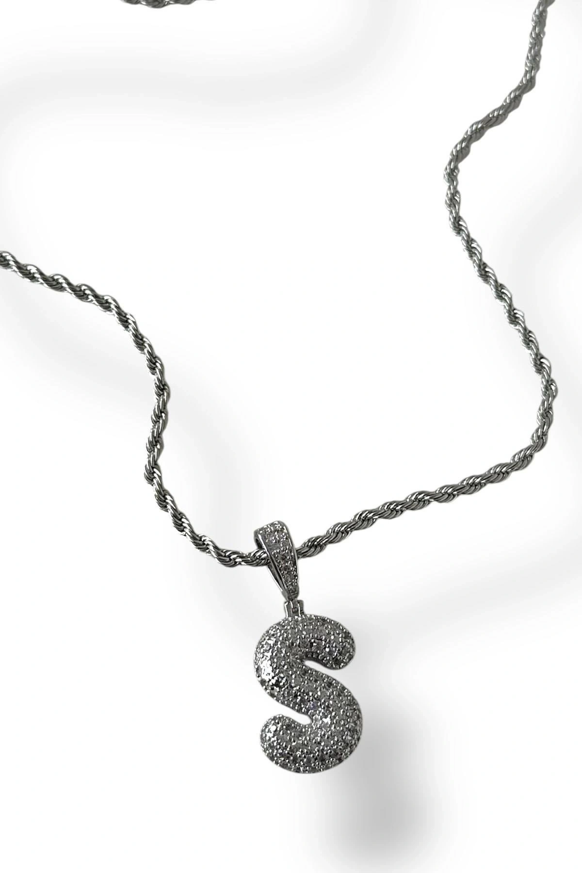 Gümüş Renk Taş Detaylı S Harfli Kolye