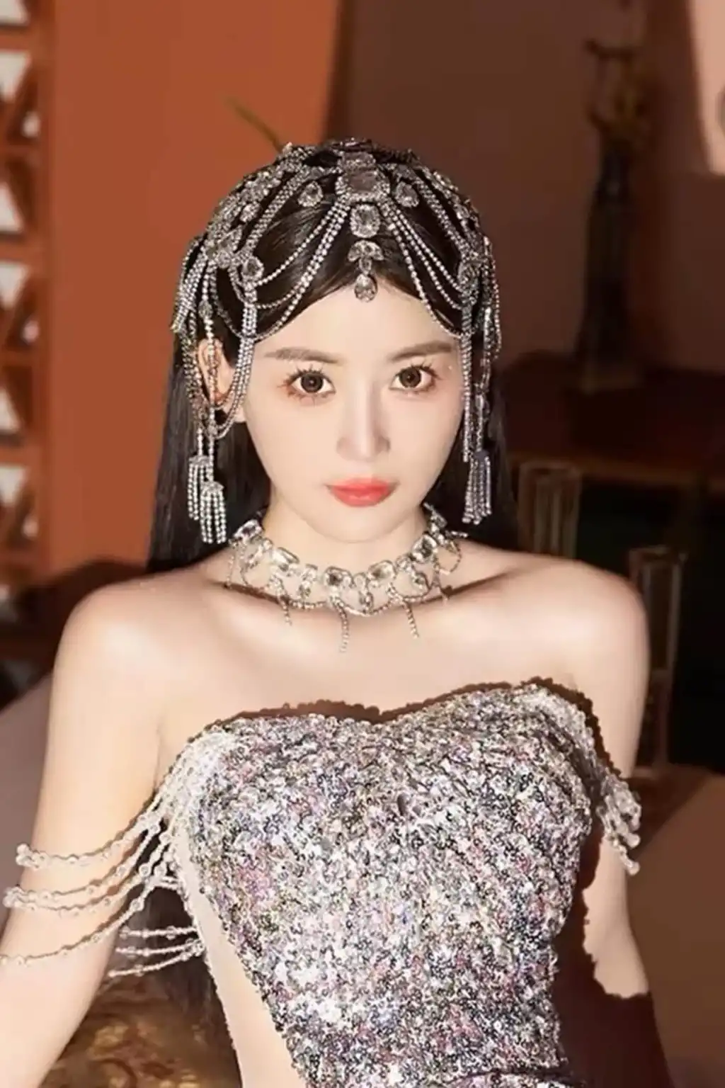 Gümüş Renk Taş Detaylı Saç Aksesuarı/ Kına Aksesuarı