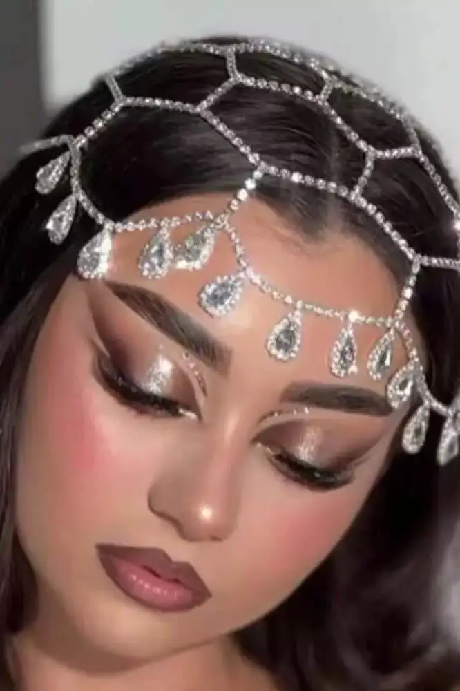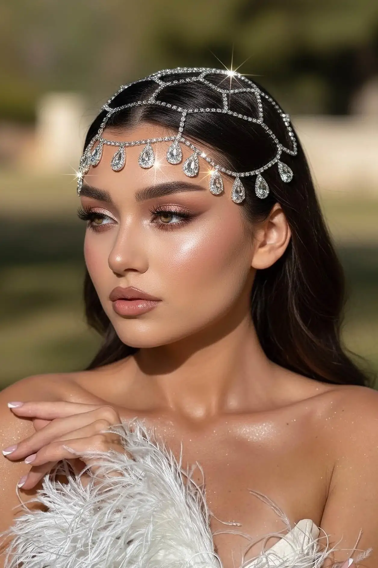 Gümüş Renk Taş Detaylı Alınlık/Kına Aksesuarı