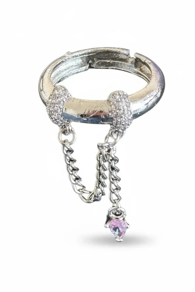 Gümüş Renk Taş Detaylı Sallantılı Ayarlanabilir Yüzük