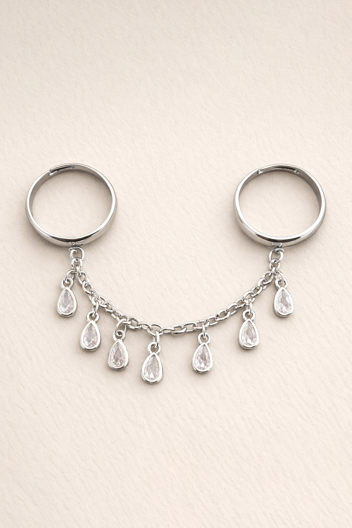 Gümüş Renk Taş Detaylı Sallantılı İkili Ayarlanabilir Yüzük