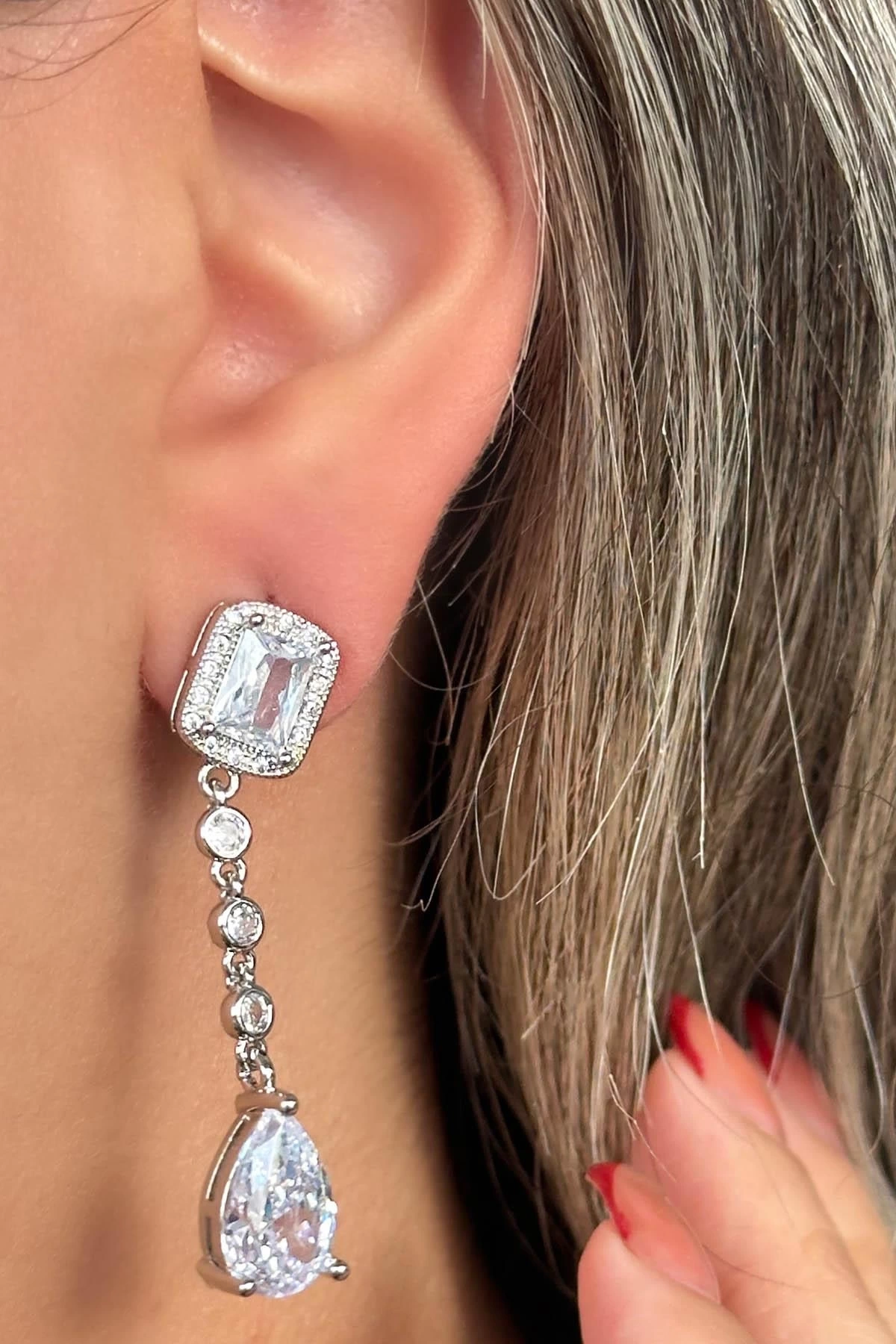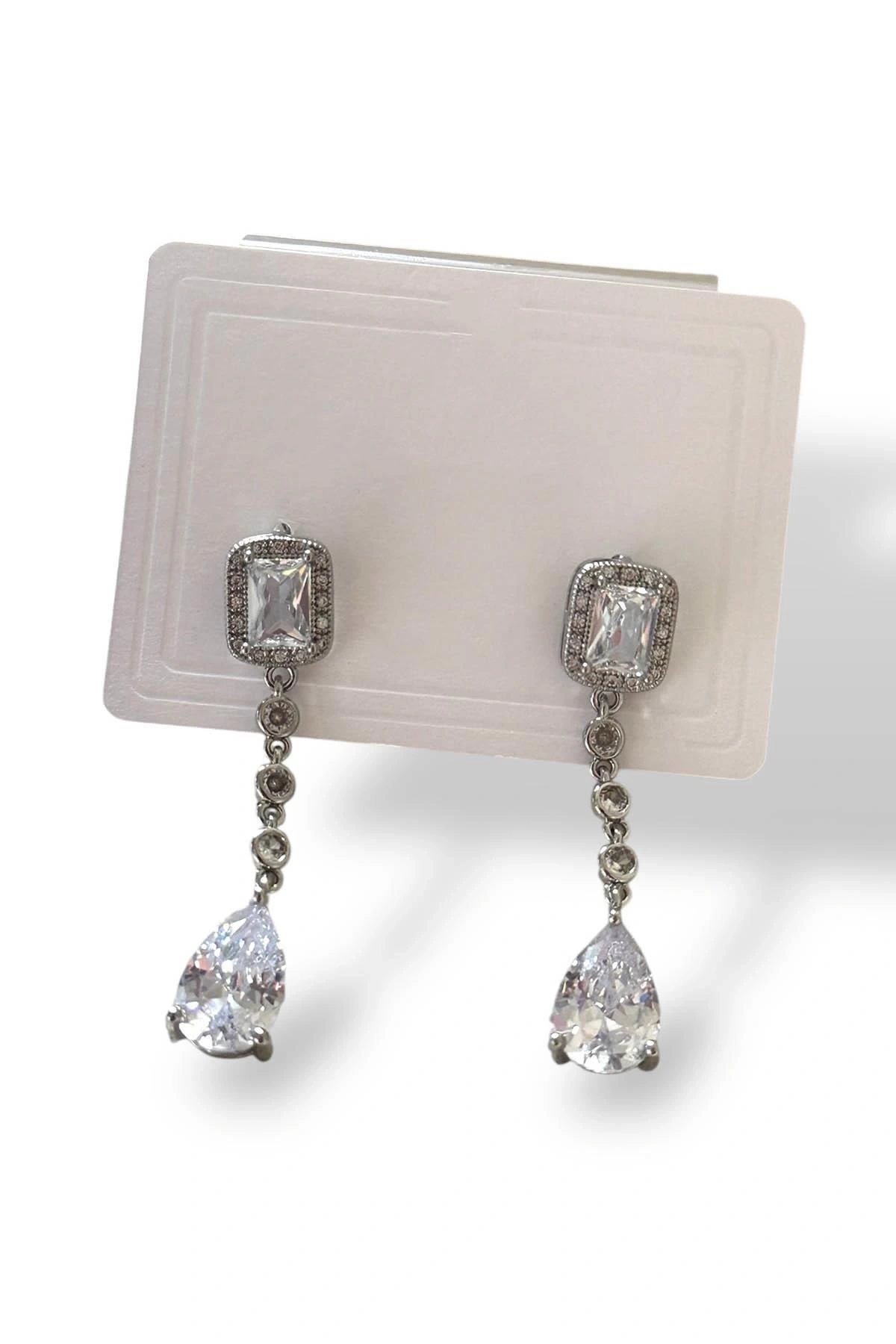Gümüş Renk Taş Detaylı Sallantılı Küpe (Çift)