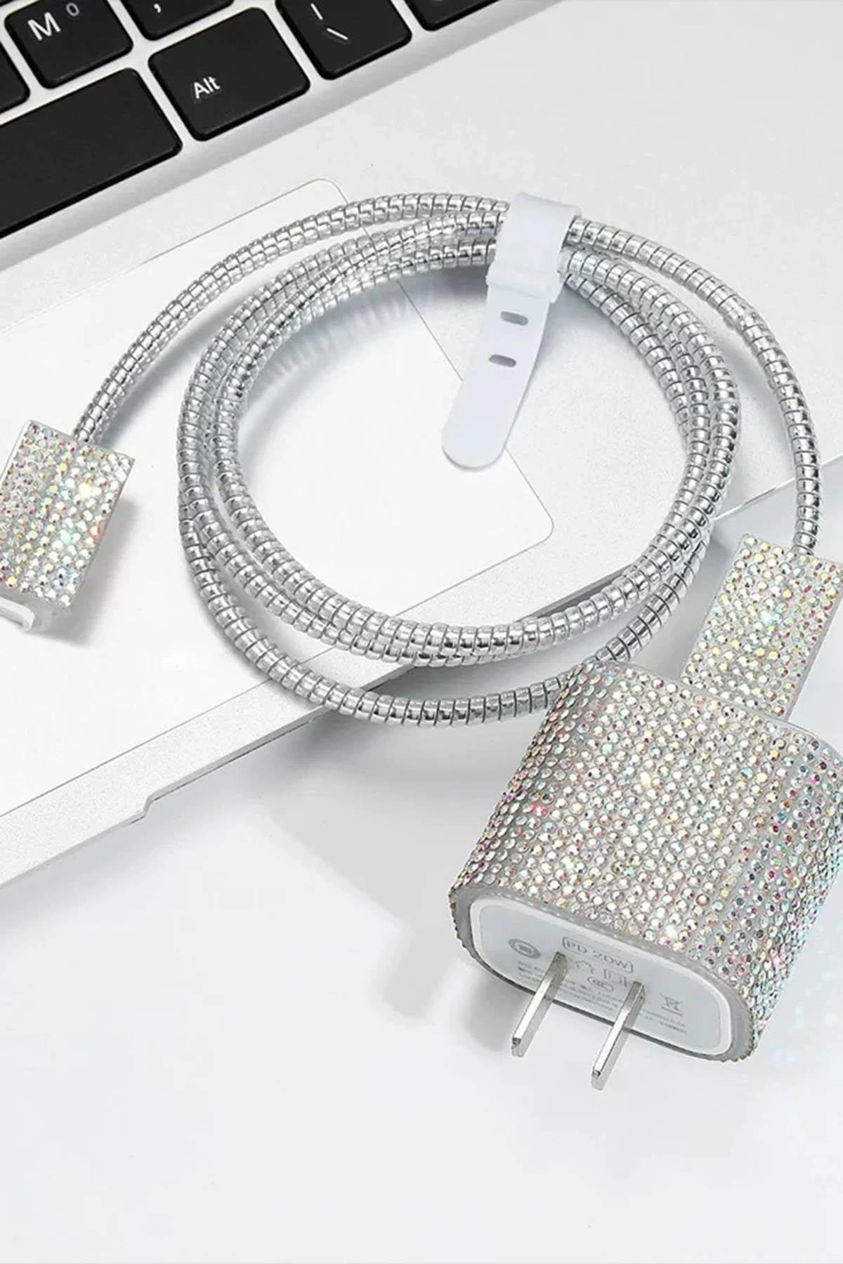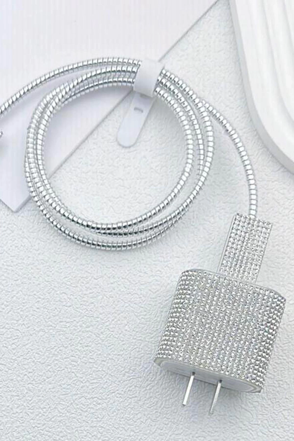 Gümüş Renk Taş Detaylı Şarj Kablosu/ Adaptör Koruyucu Kılıf