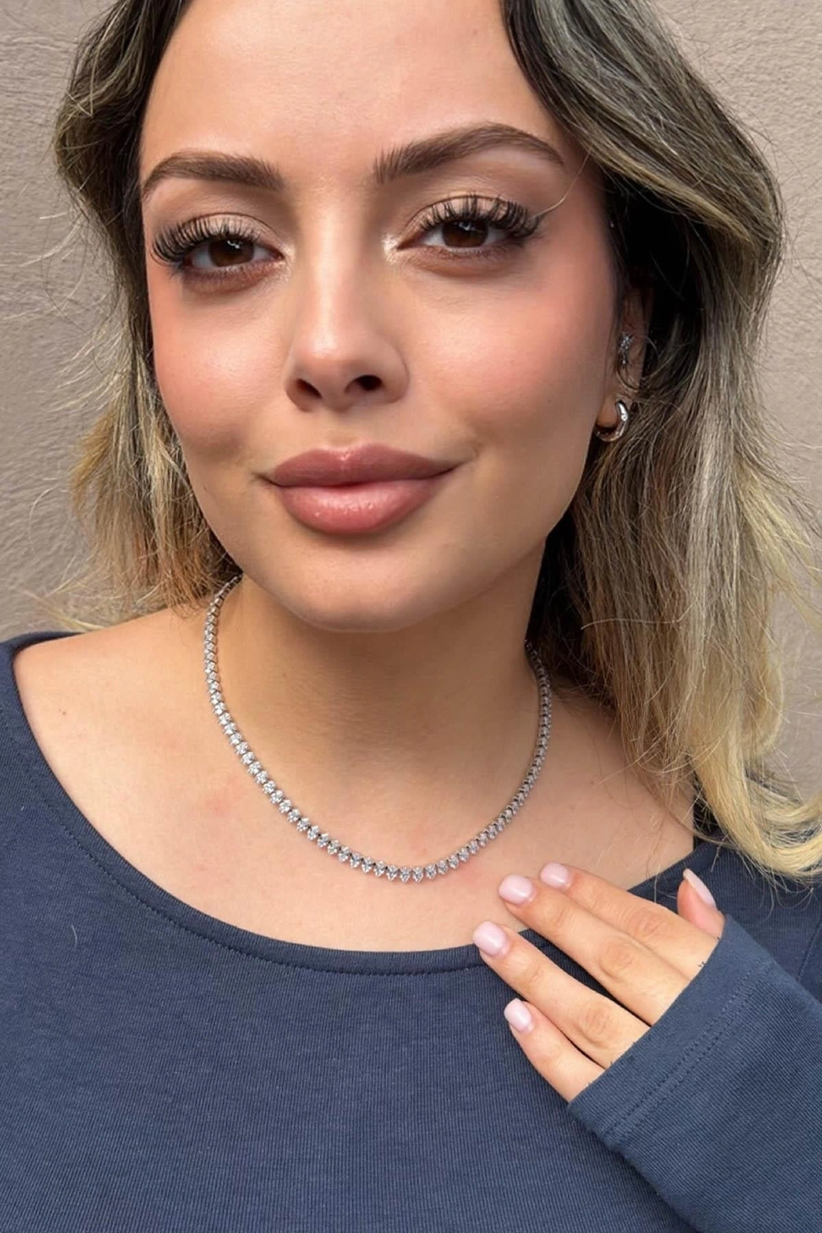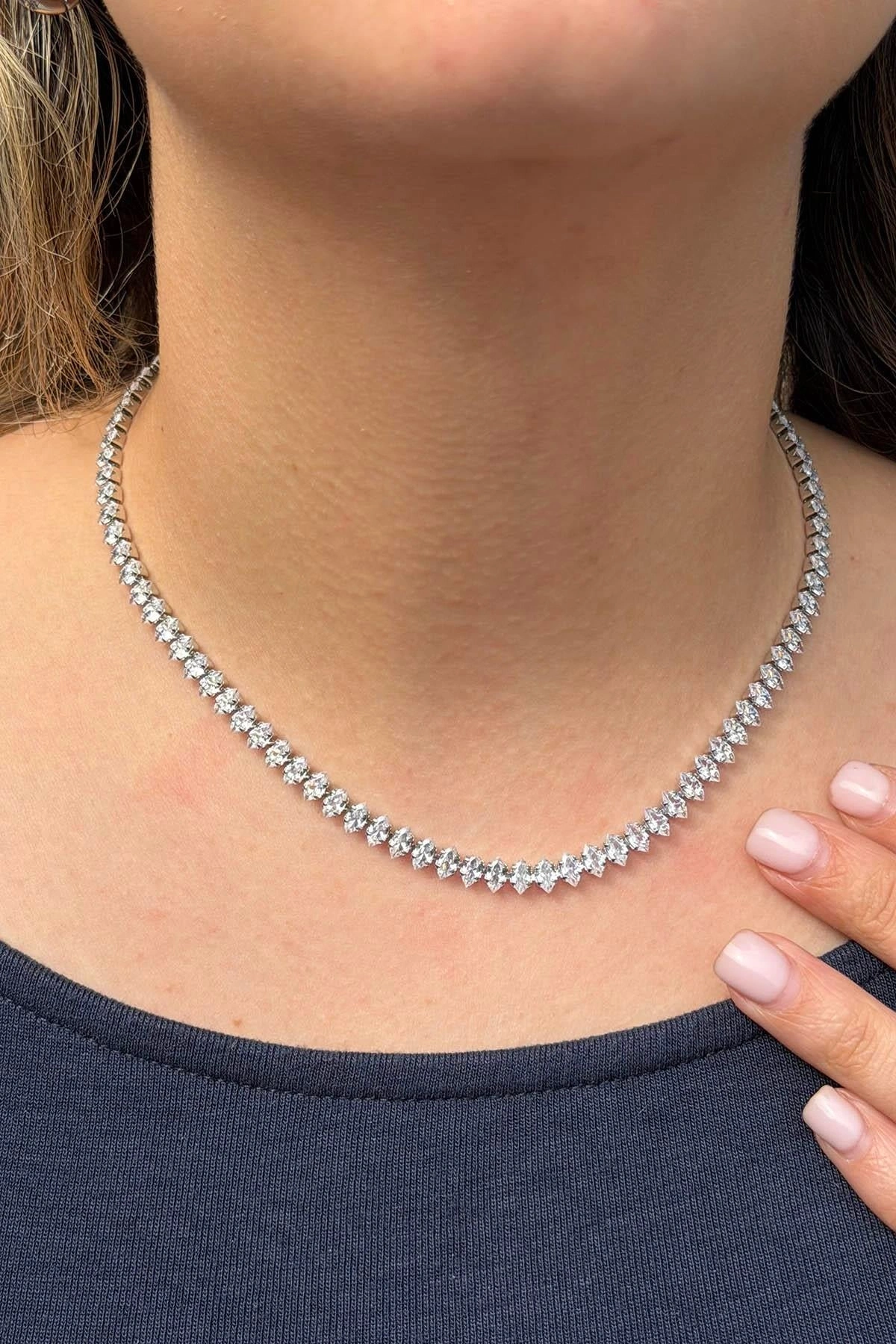 Gümüş Renk Taş Detaylı Su Yolu Kolye