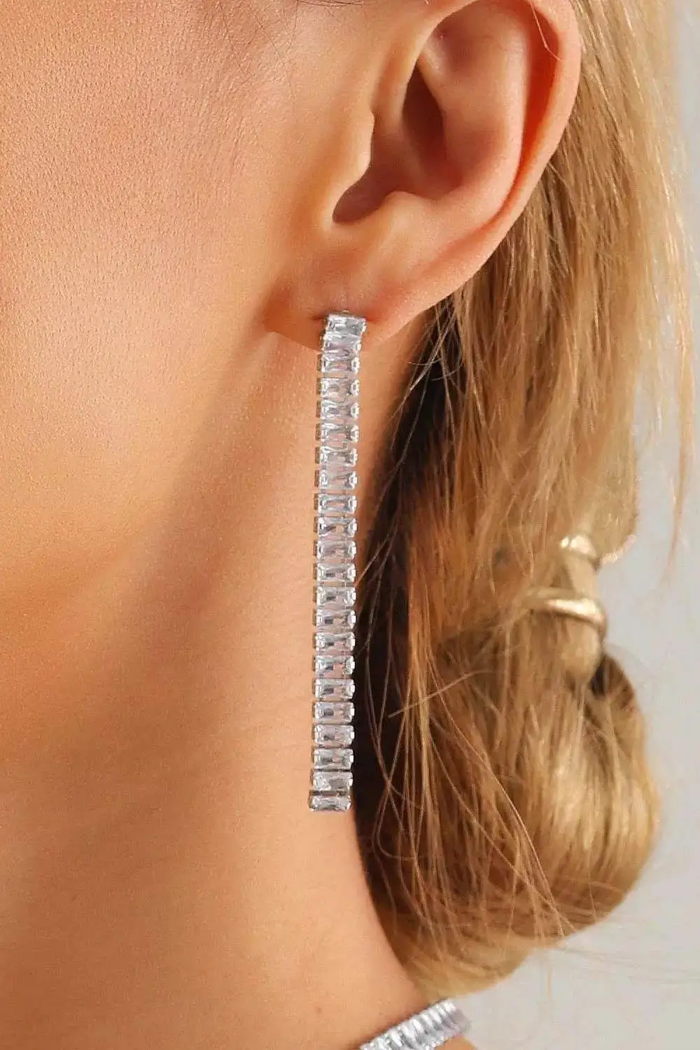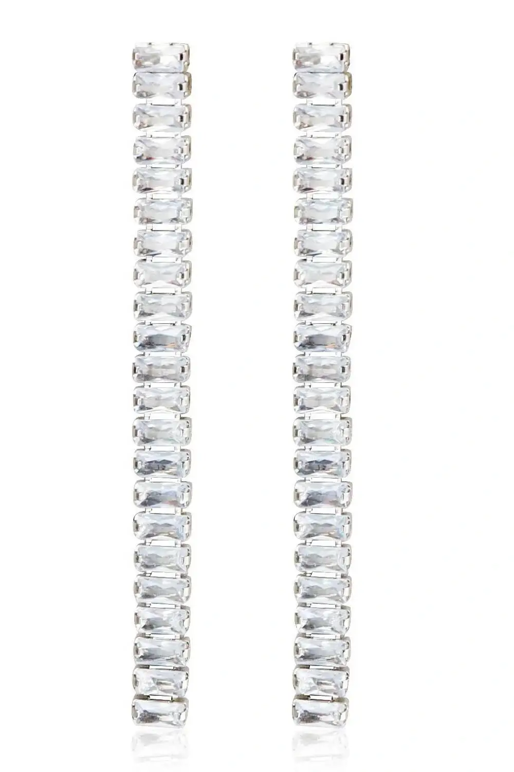 Gümüş Renk Taş Detaylı Su Yolu Küpe (Çift)