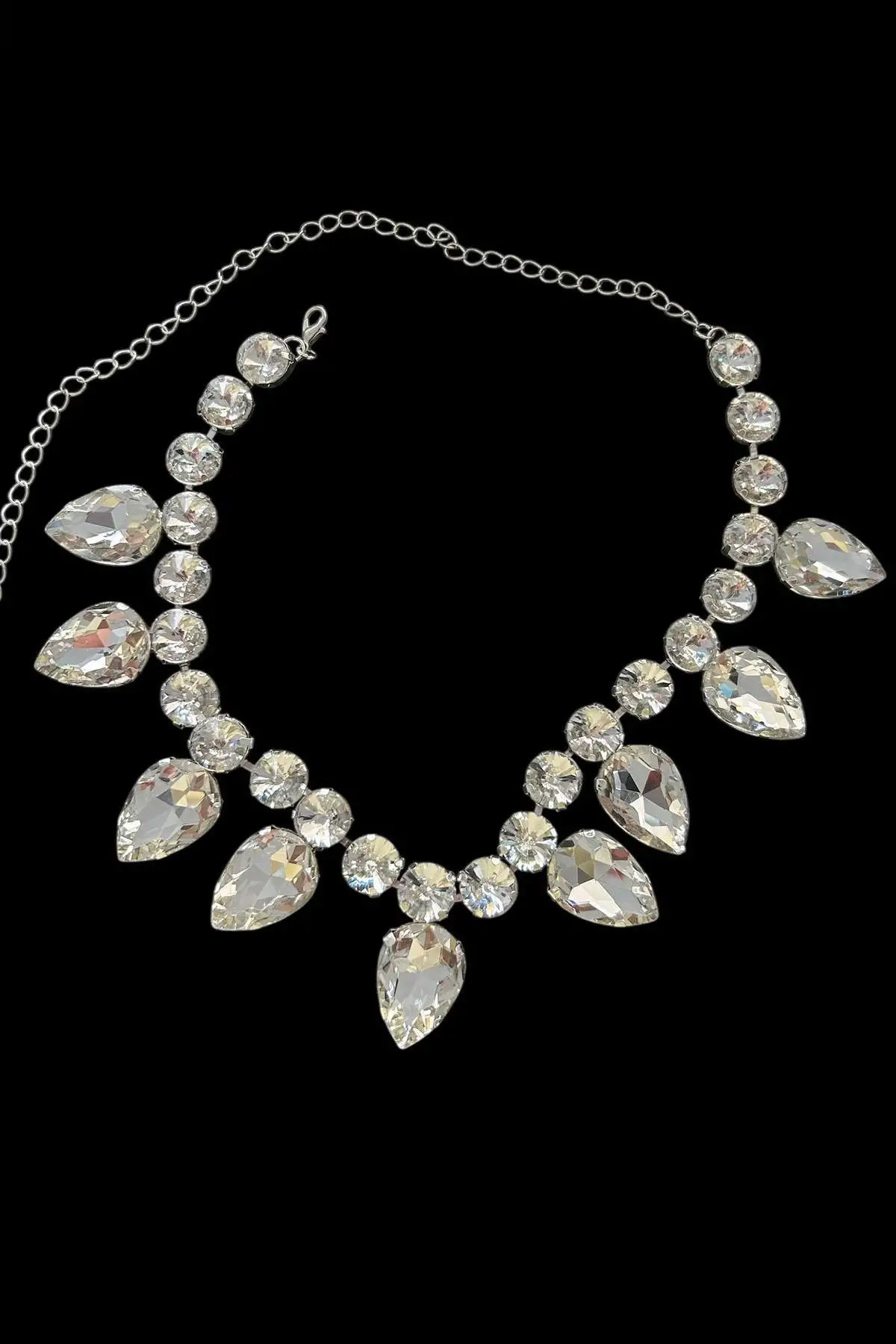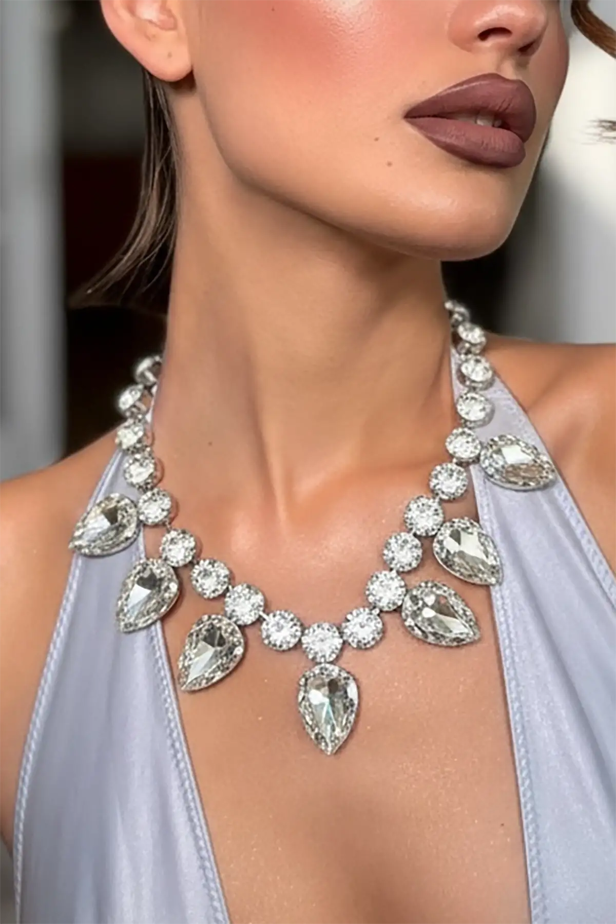 Gümüş Renk Taş Detaylı Tasarım Abiye Kolye