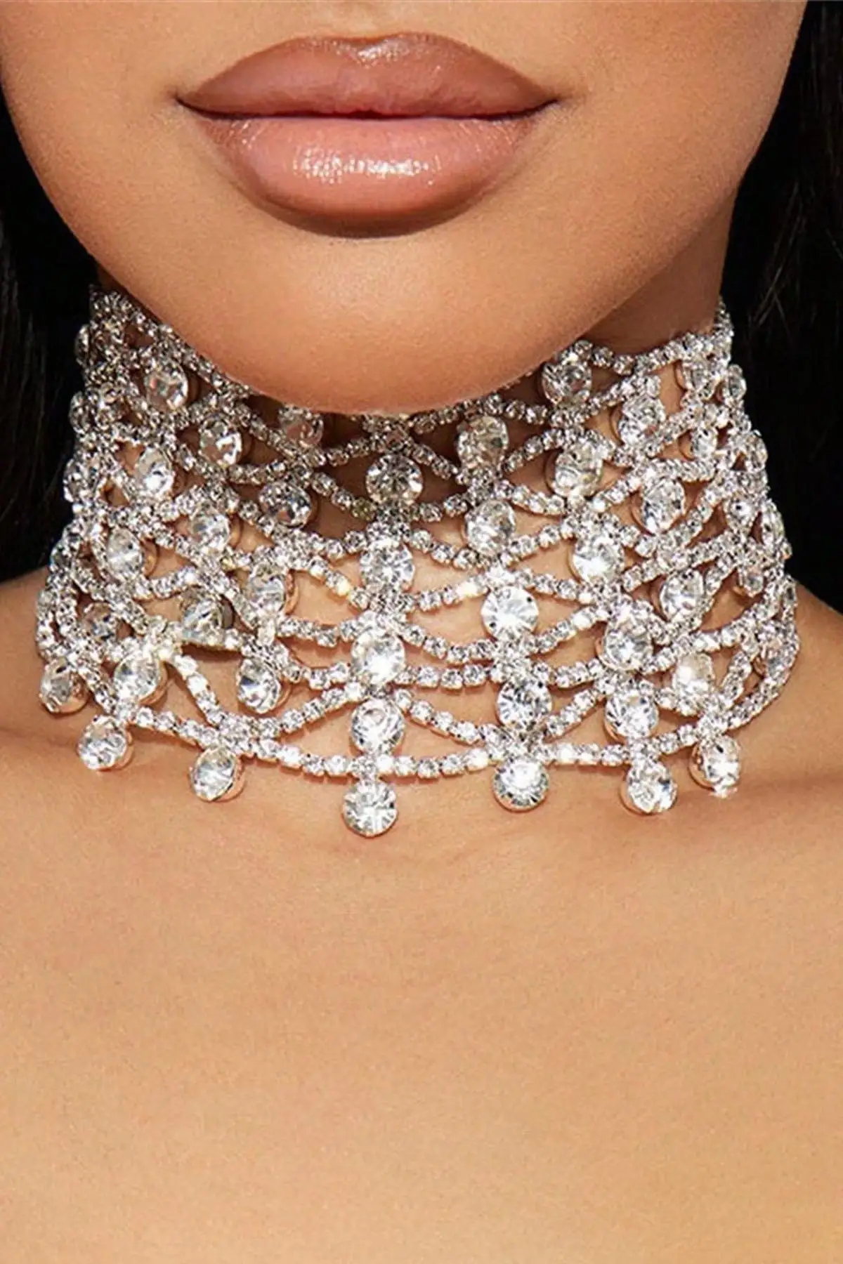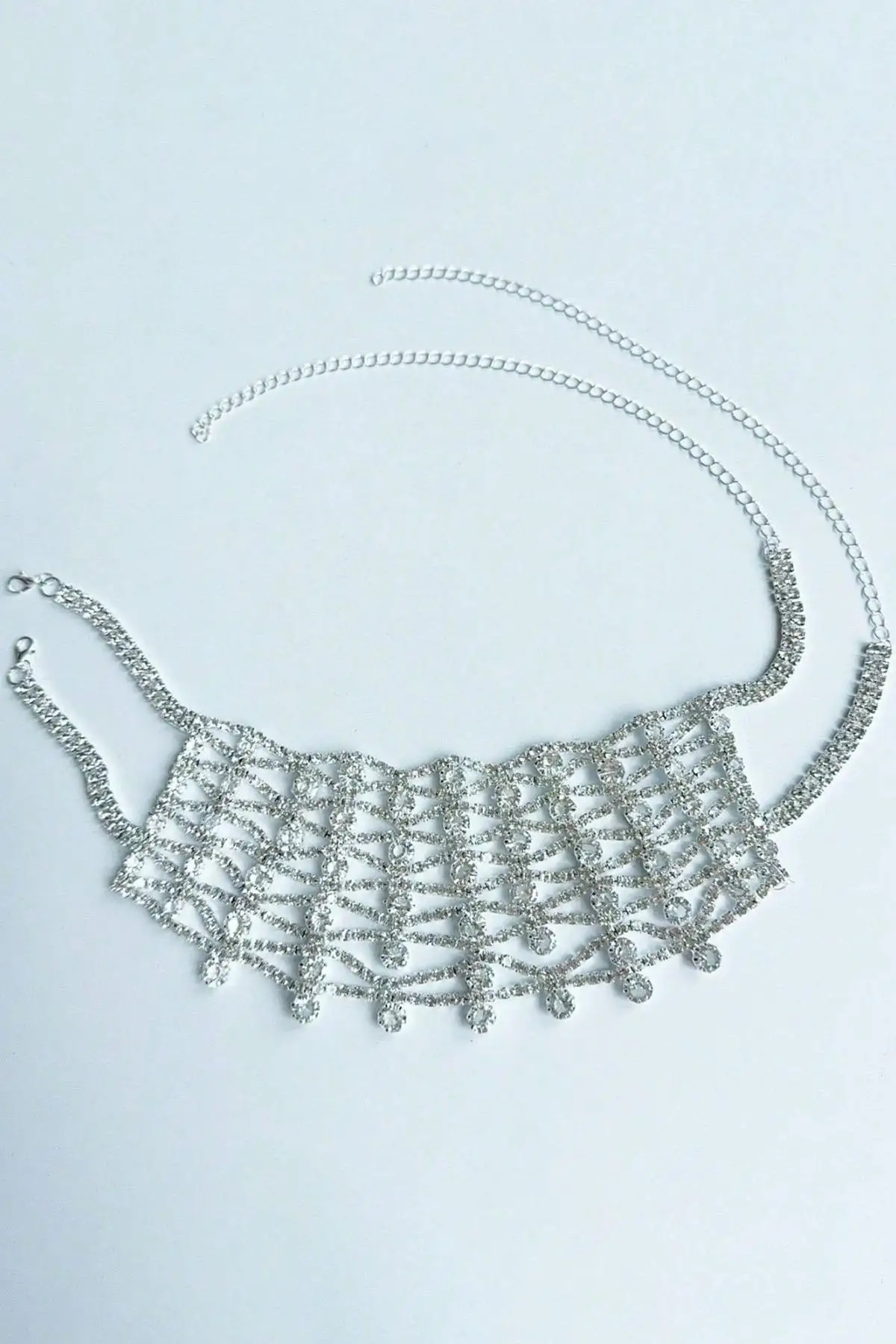 Gümüş Renk Taş Detaylı Tasarım Abiye Kolye