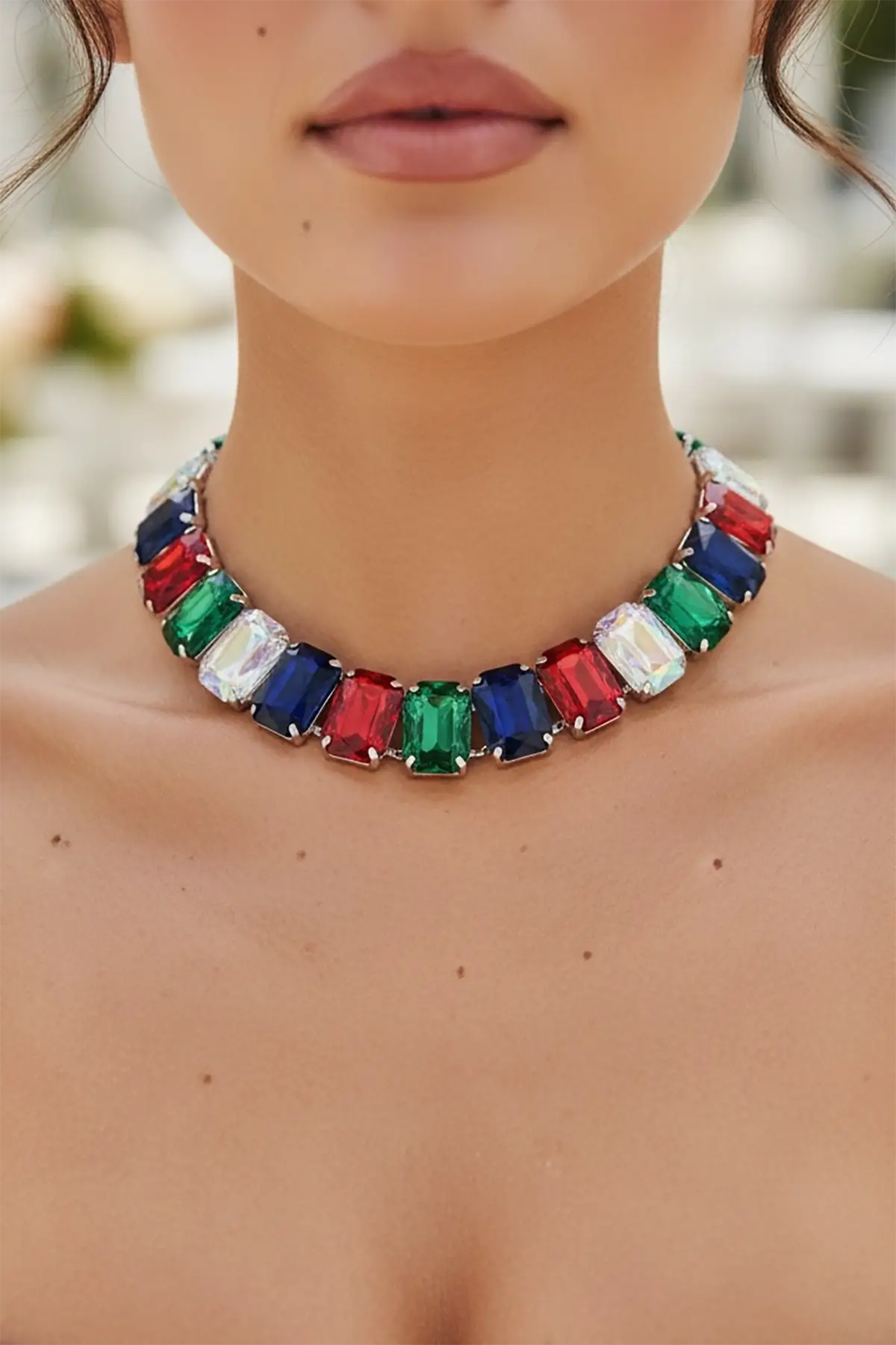 Gümüş Renk Taş Detaylı Tasarım Abiye Kolye