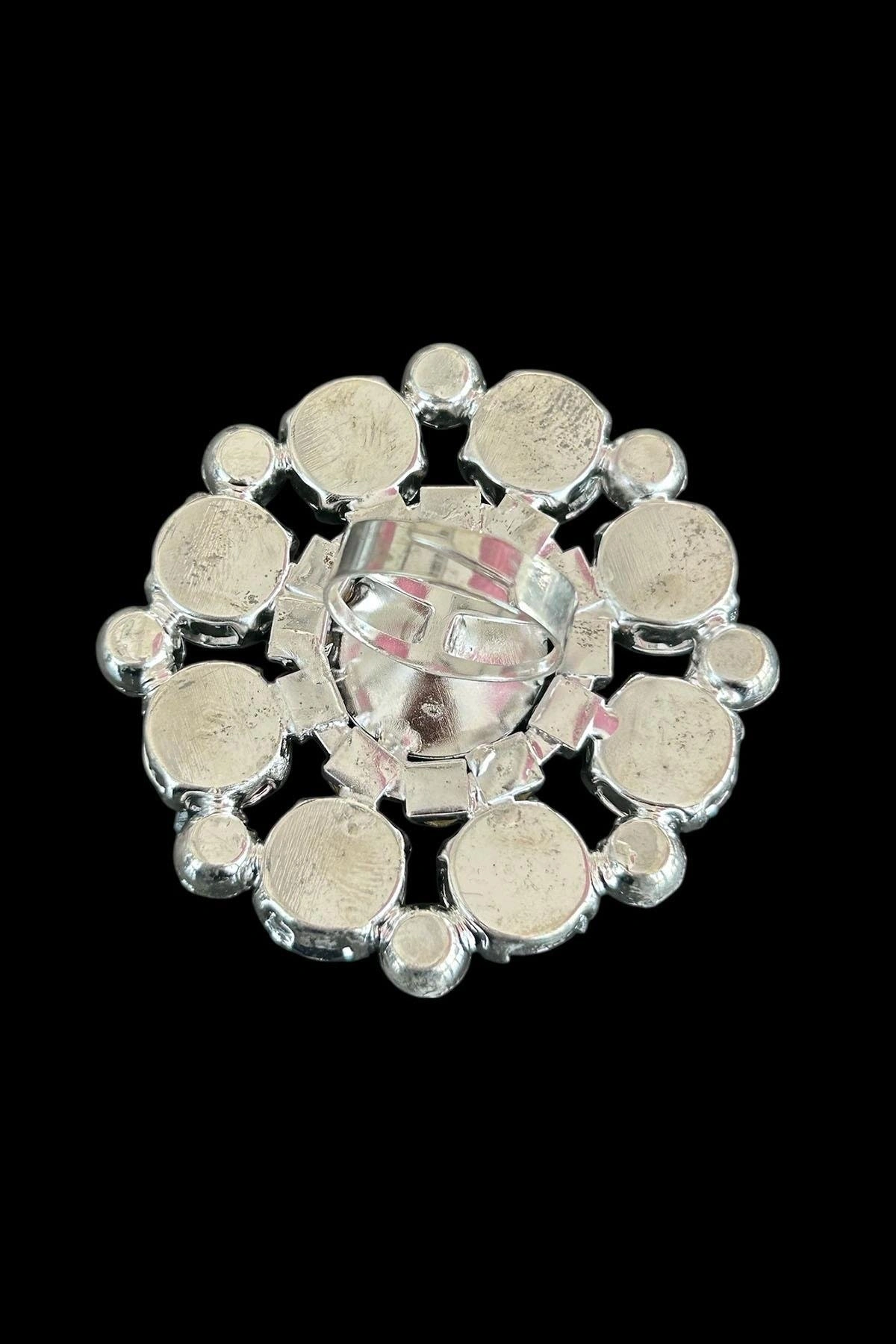 Gümüş Renk Taş Detaylı Tasarım Ayarlanabilir Yüzük