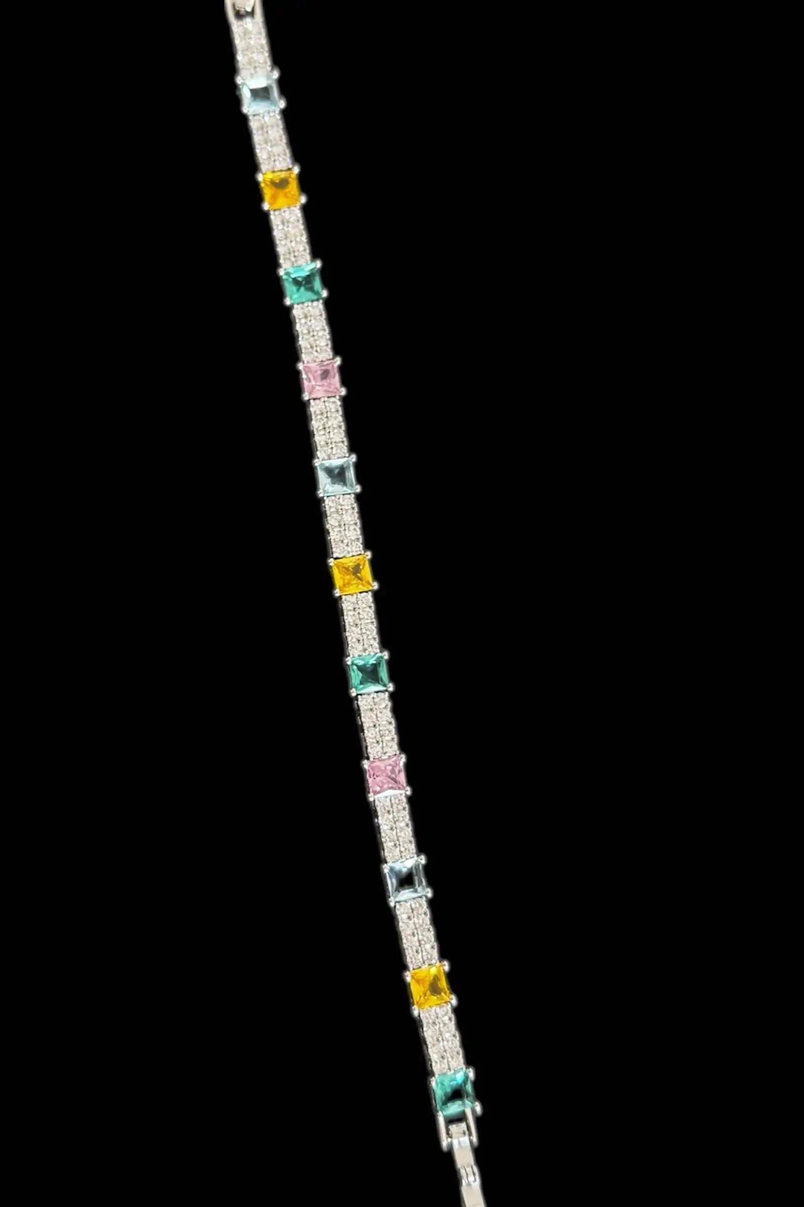 Gümüş Renk Renkli Taş Detaylı Tasarım Bileklik