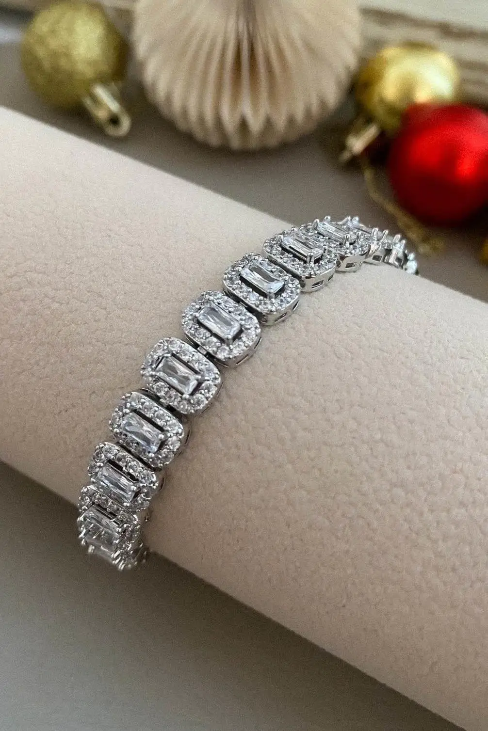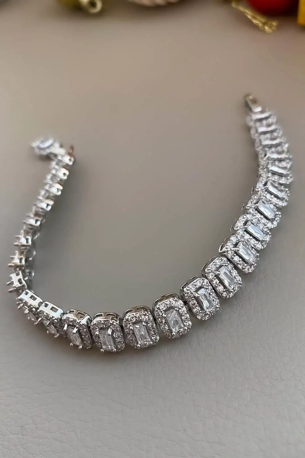 Gümüş Renk Taş Detaylı Tasarım Bileklik