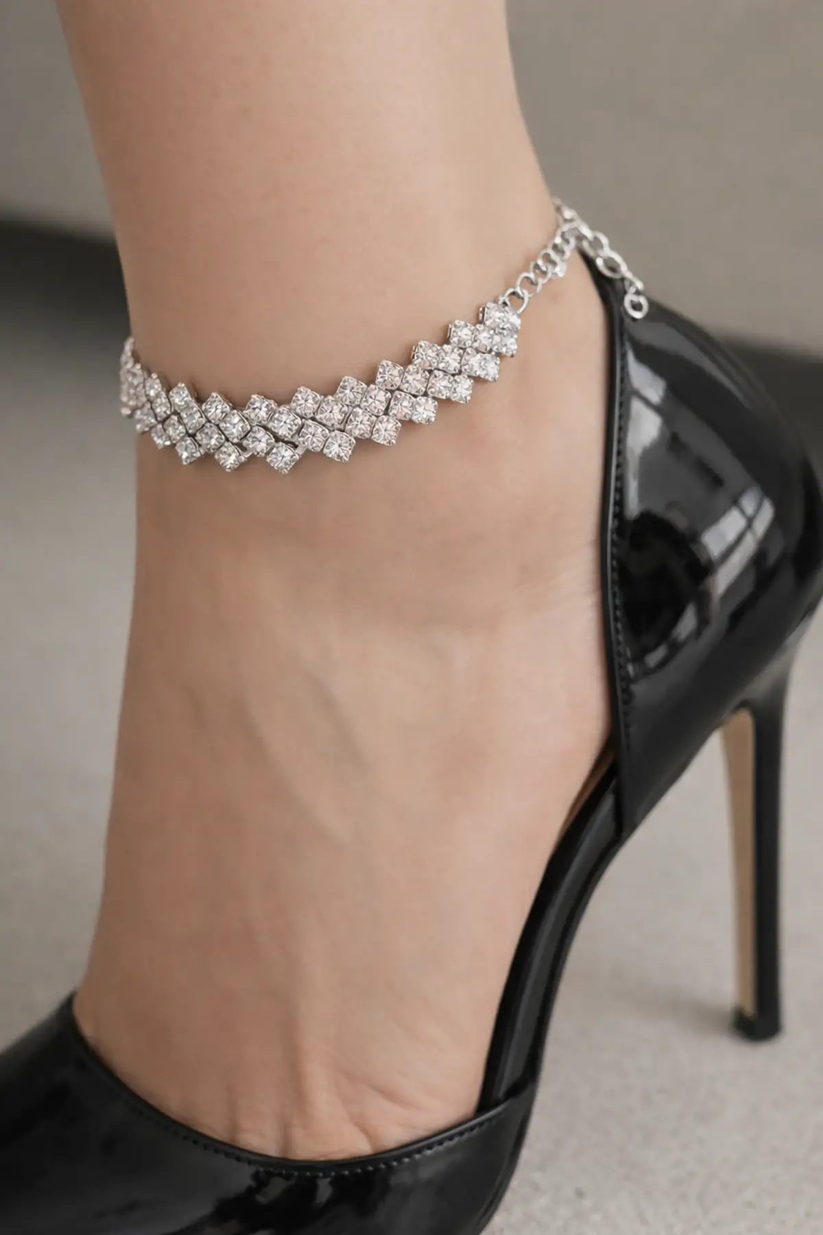 Gümüş Renk İkili Zincir Detaylı Halhal