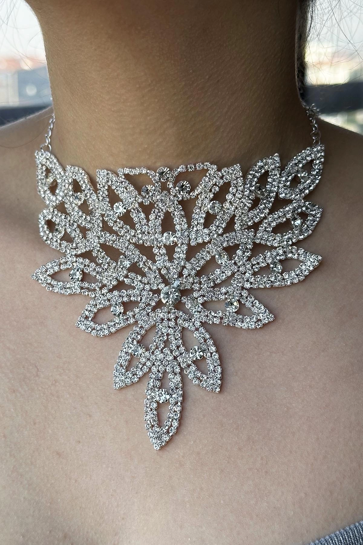 Gümüş Renk Taş Detaylı Tasarım Kolye