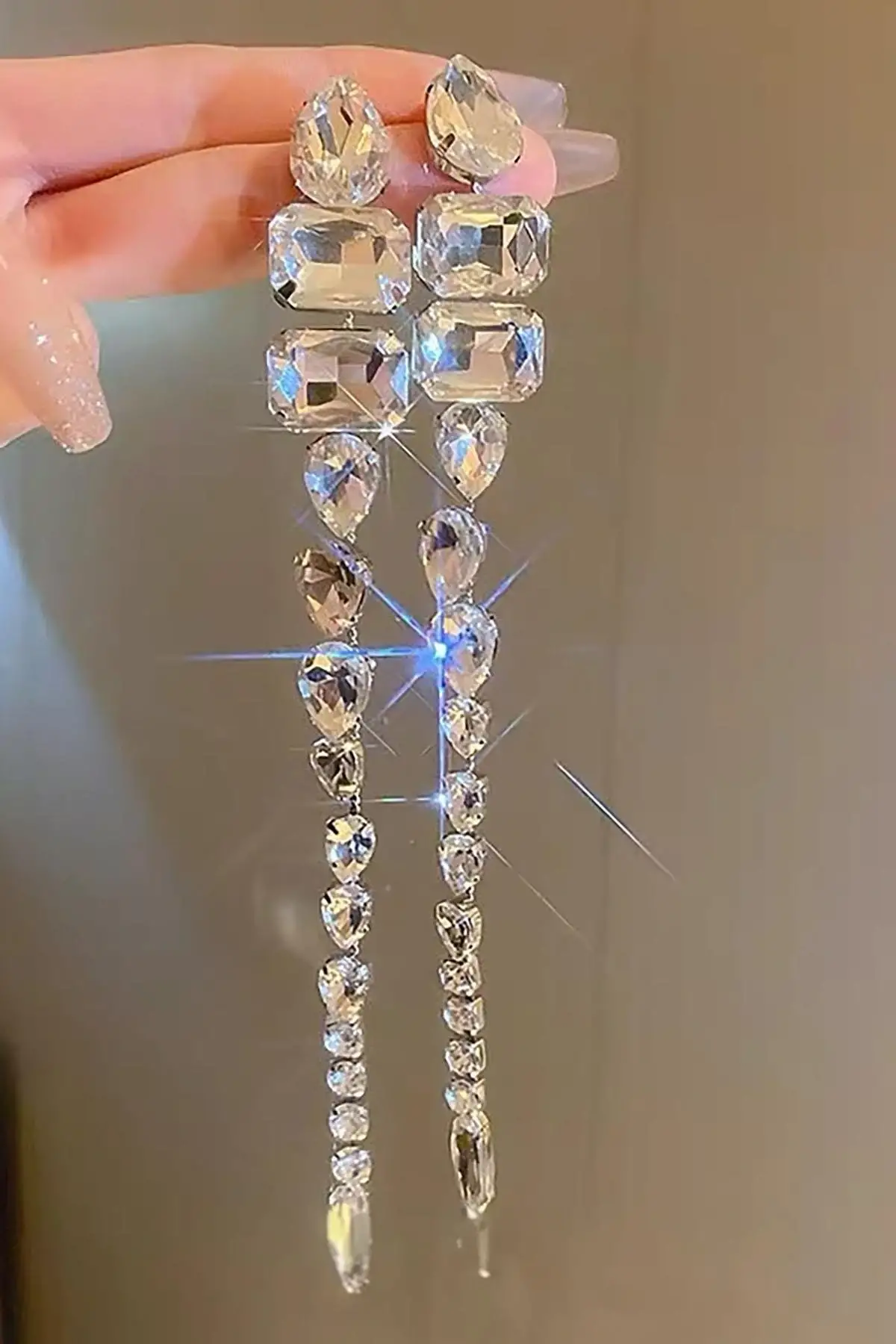 Gümüş Renk Taş Detaylı Tasarım Küpe (Çift)