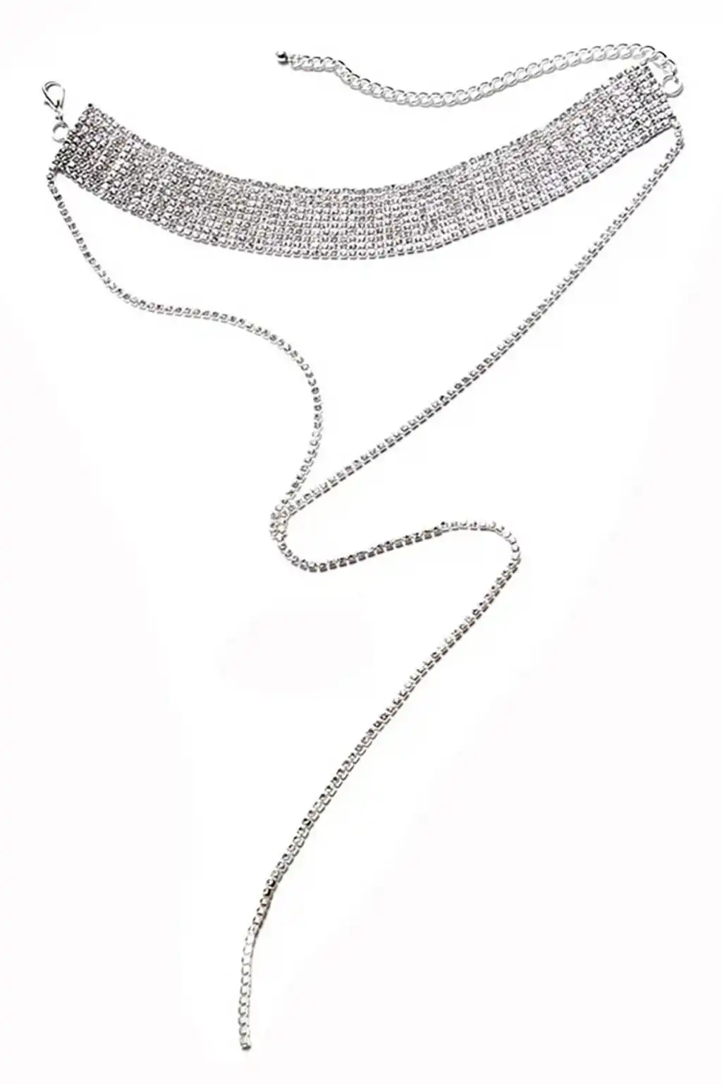 Gümüş Renk Taş Detaylı Tasarım Vücut Aksesuar