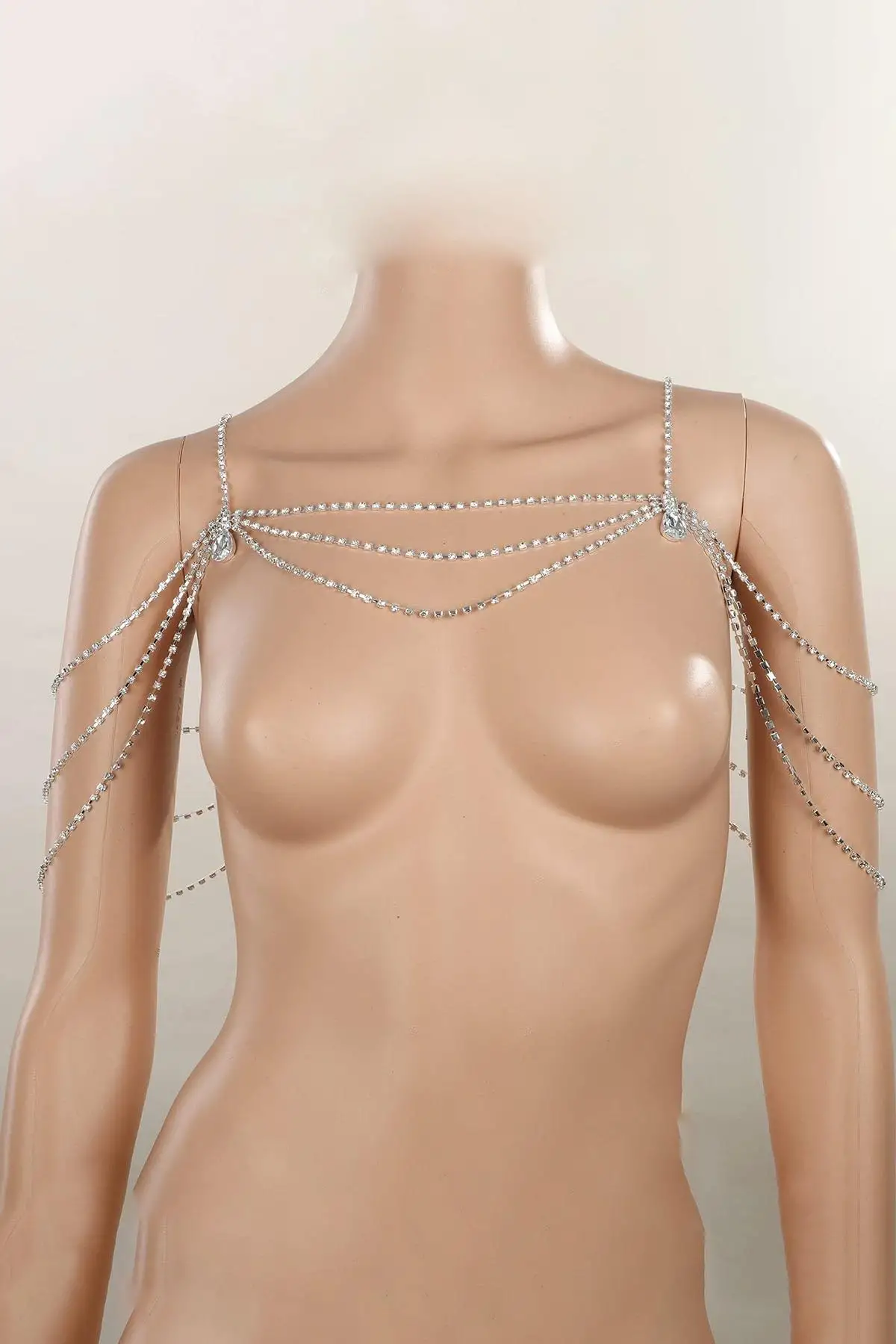 Gümüş Renk Taş Detaylı Tasarım Vücut Aksesuar