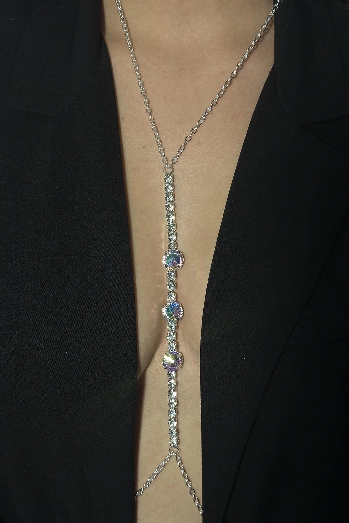 Gümüş Renk Taş Detaylı Tasarım Vücut Aksesuar