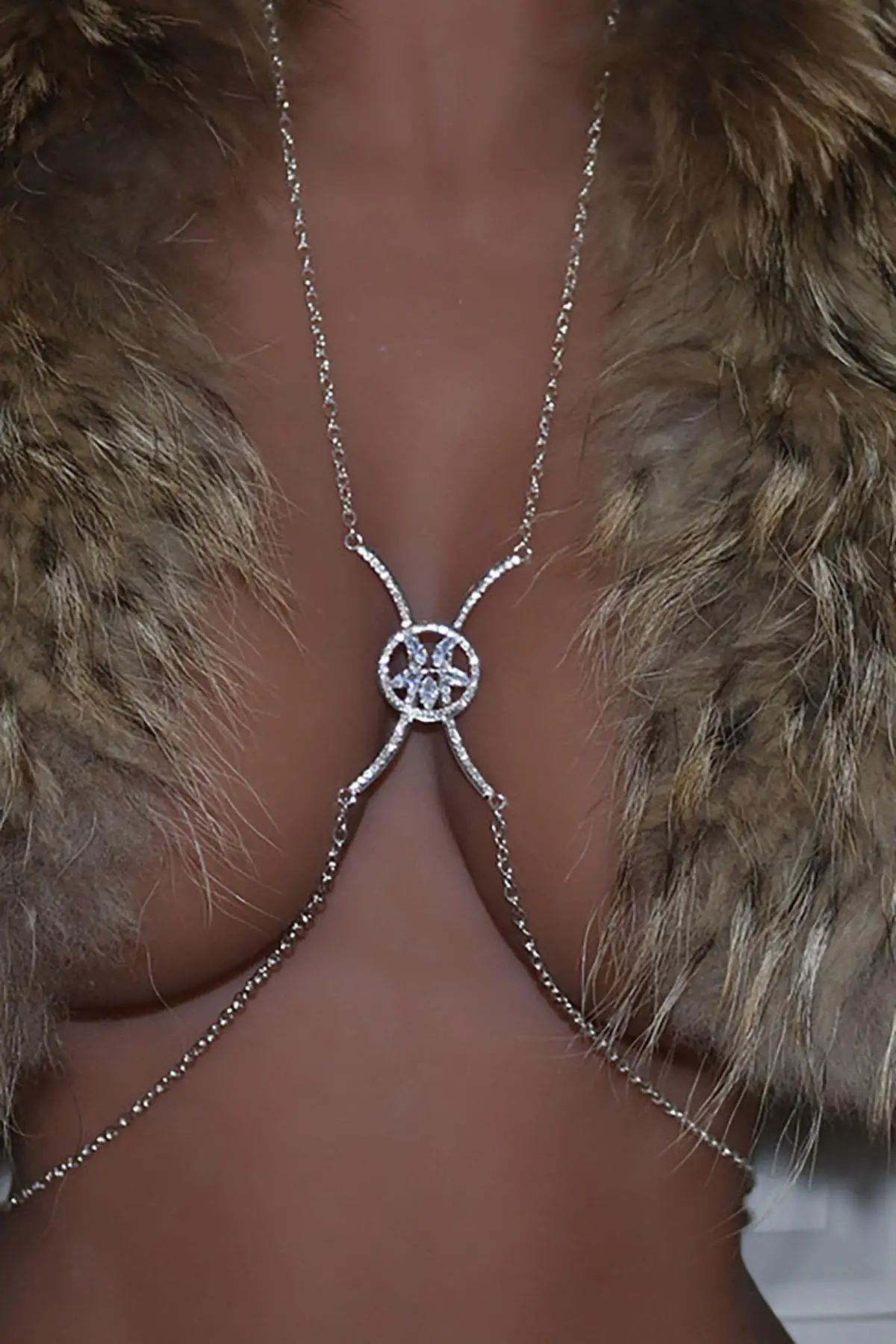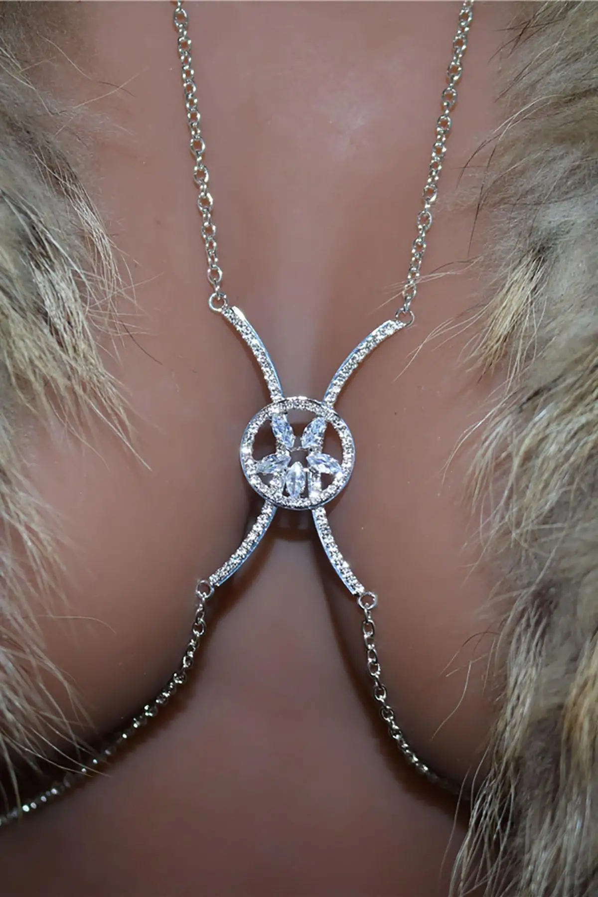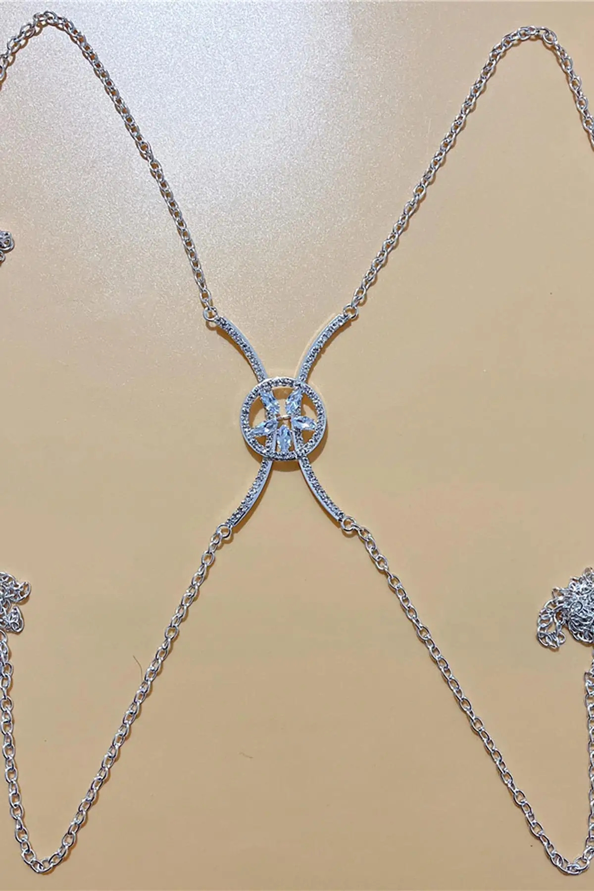 Gümüş Renk Taş Detaylı Tasarım Vücut Aksesuar