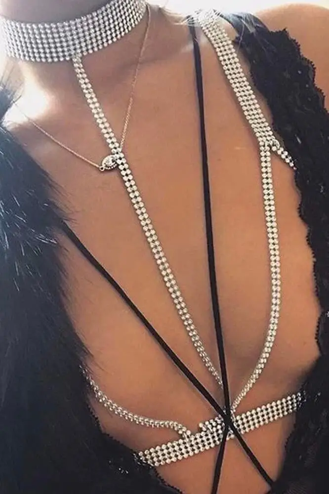 Gümüş Renk Taş Detaylı Tasarım Vücut Aksesuar