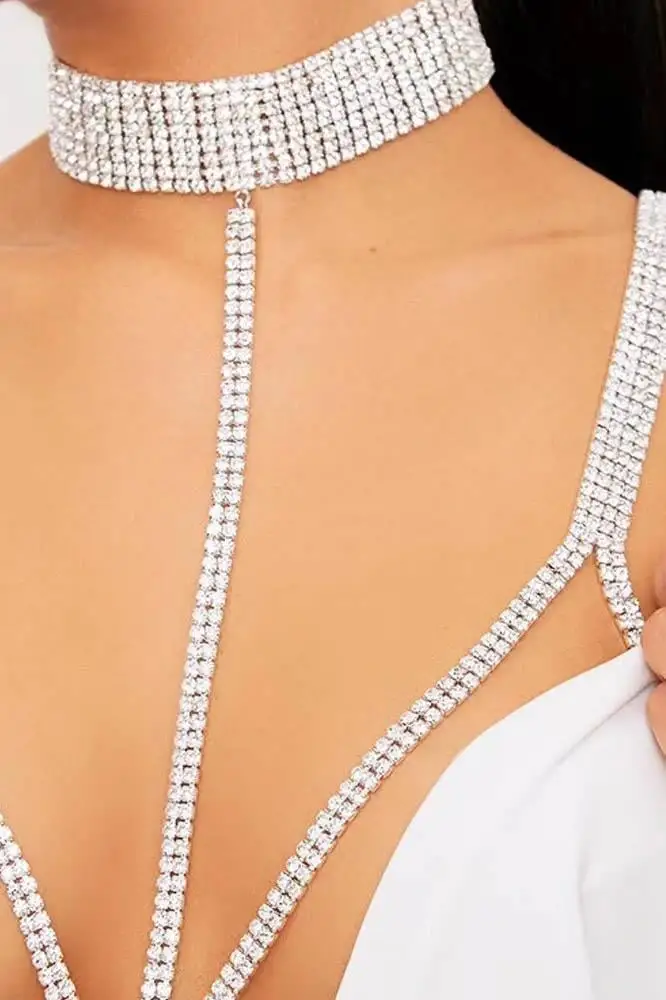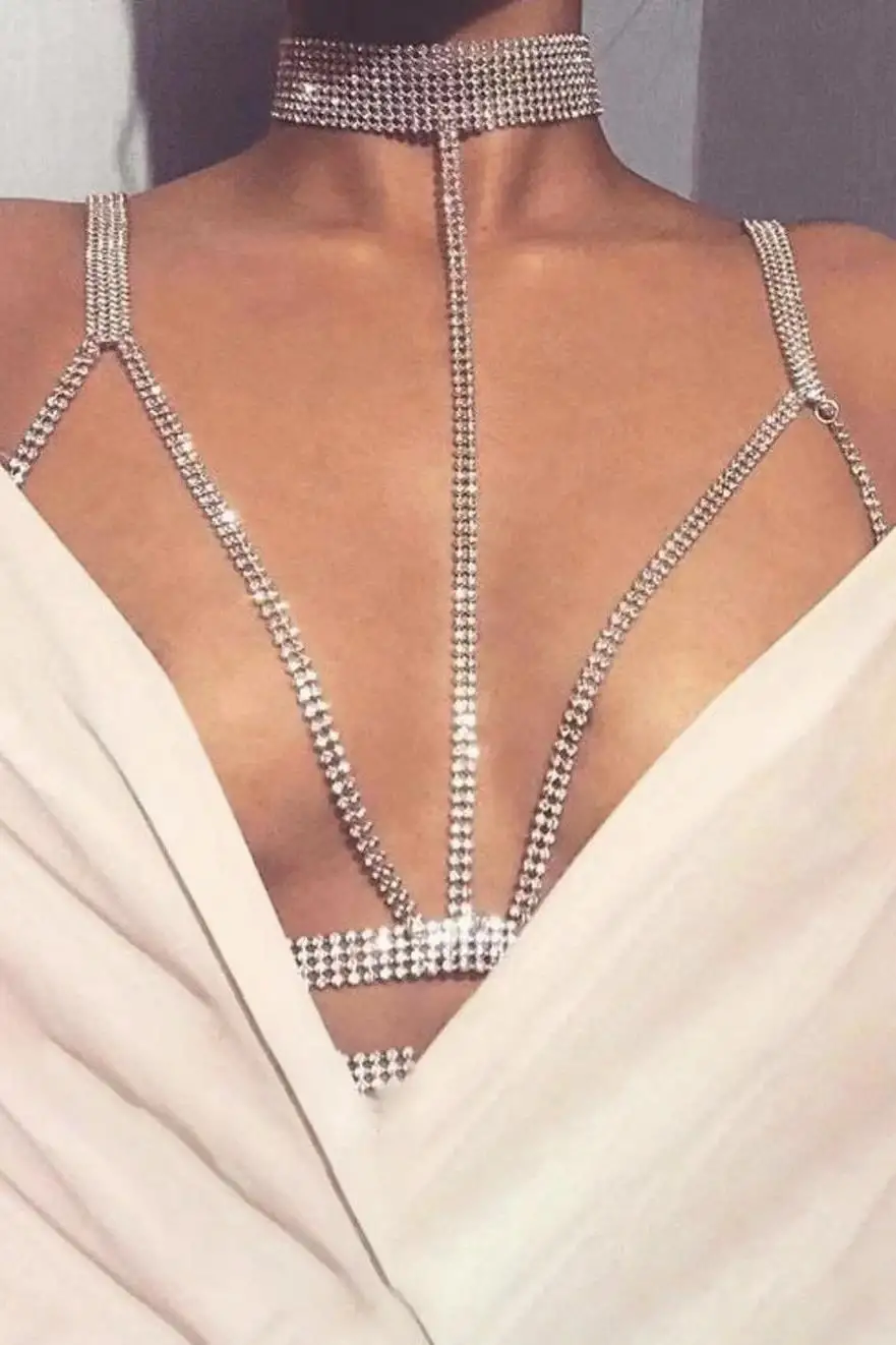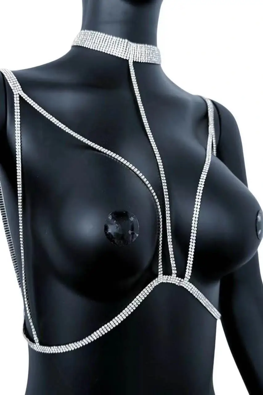 Gümüş Renk Taşlı Bikini Üstü /Bralet /Vücut Aksesuarı