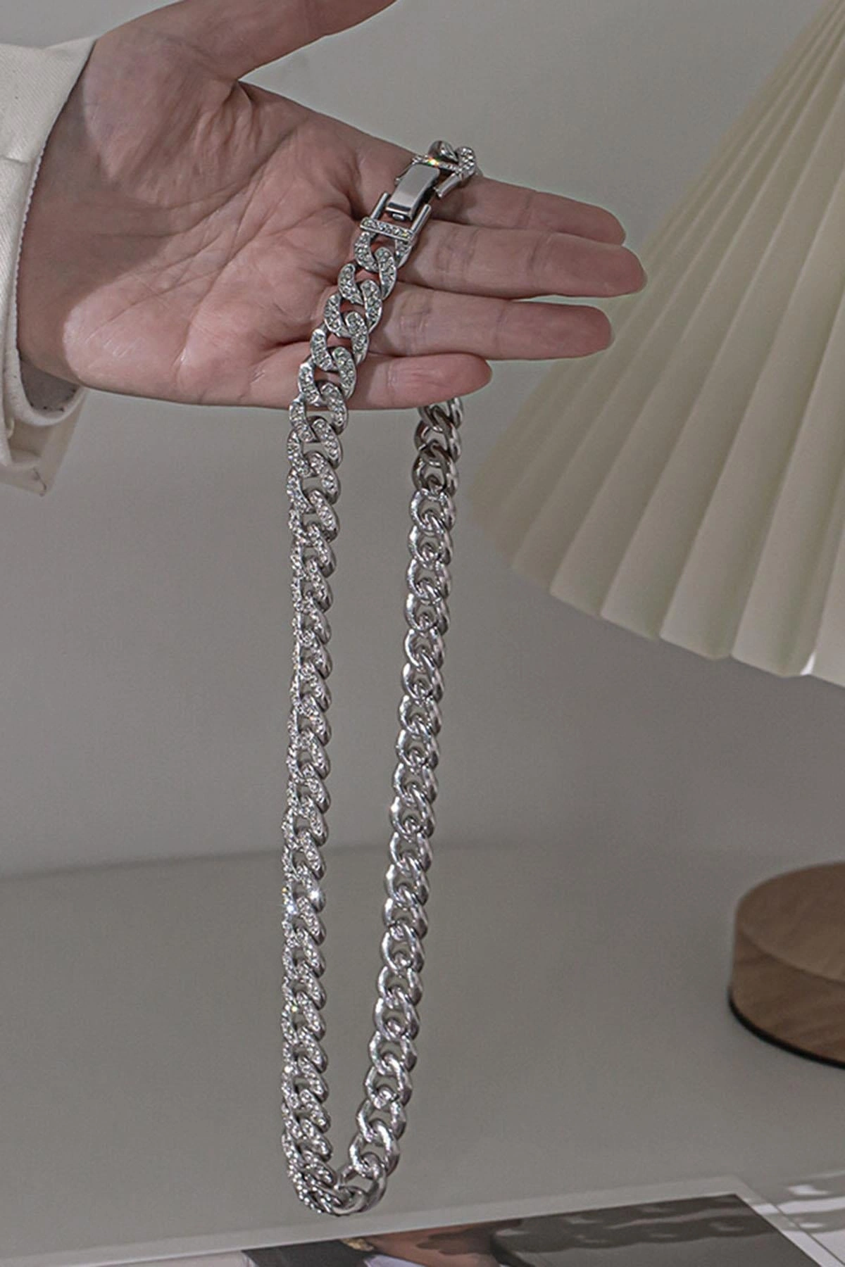 Gümüş Renk Taş Detaylı Unisex VİP Tasarım Kolye