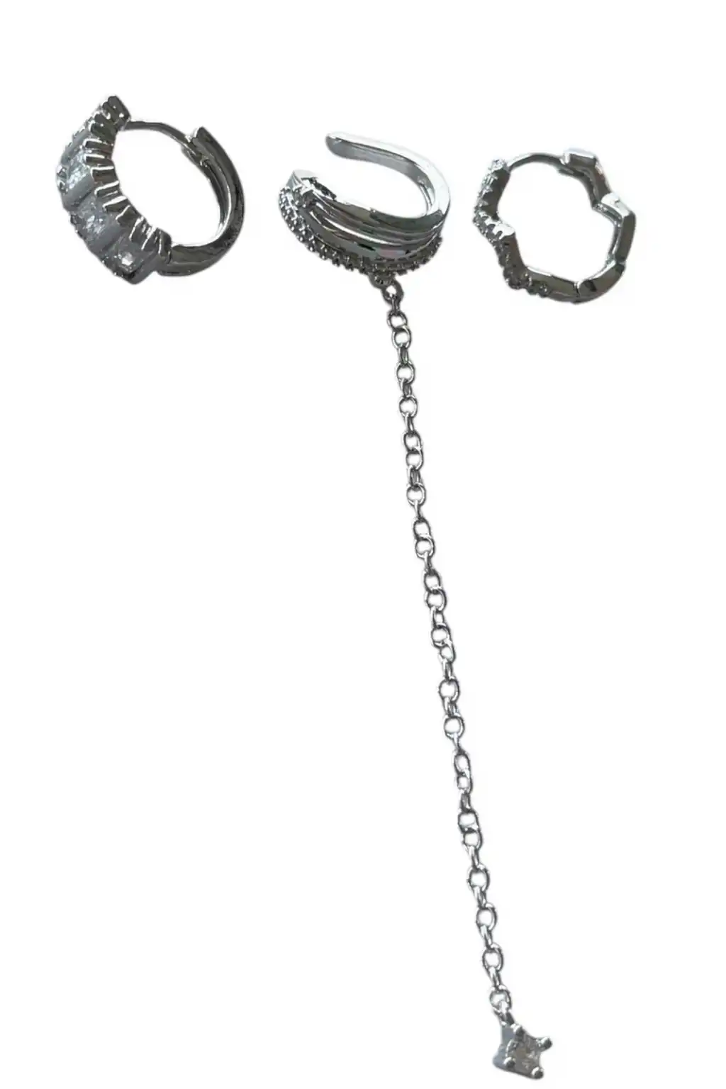 Gümüş Renk Taş Detaylı VİP 3'lü YSX Küpe Set