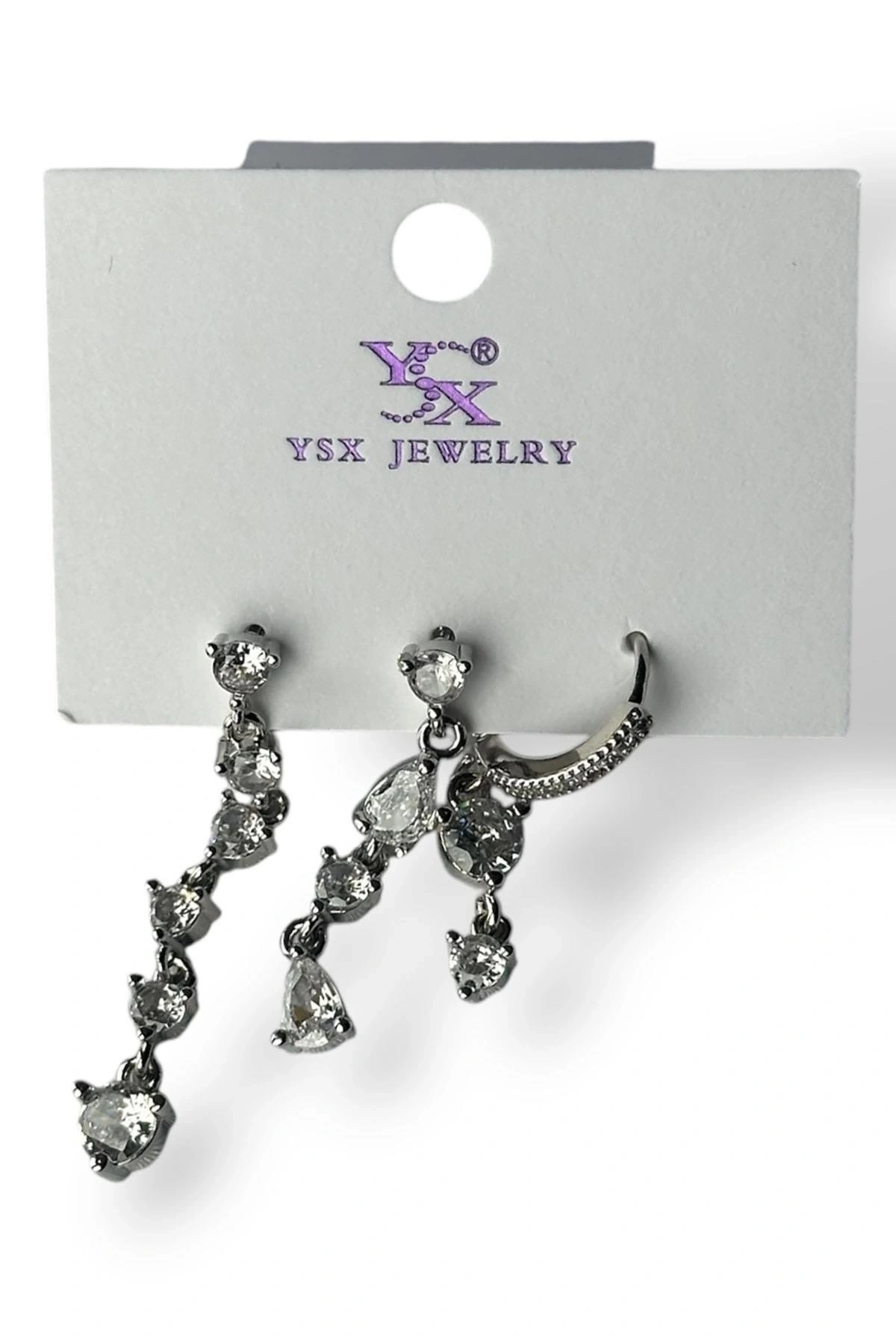 Gümüş Renk Taş Detaylı VİP 3'lü YSX Küpe Set