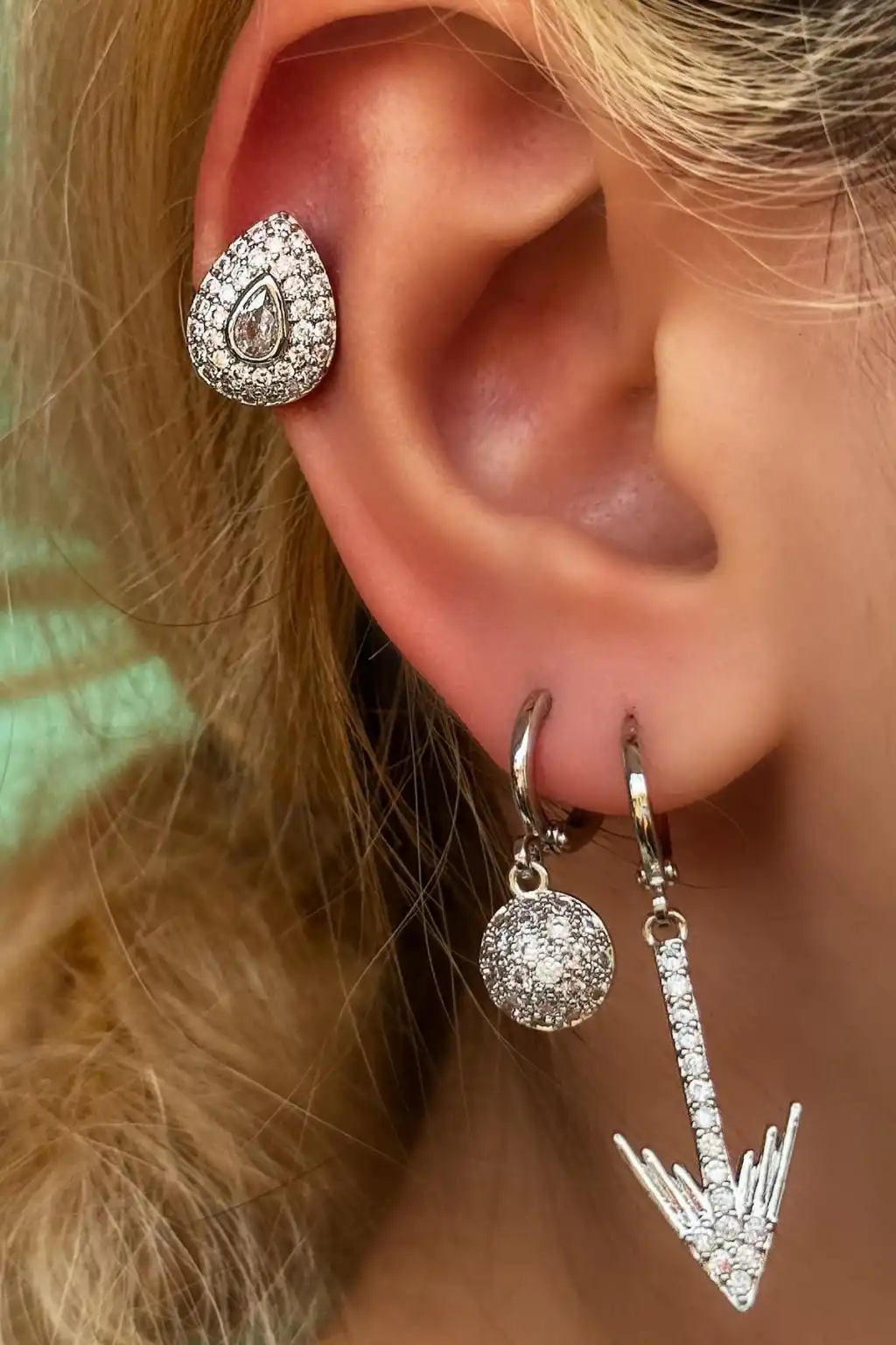 Gümüş Renk Taş Detaylı VİP 3'lü YSX Küpe Set