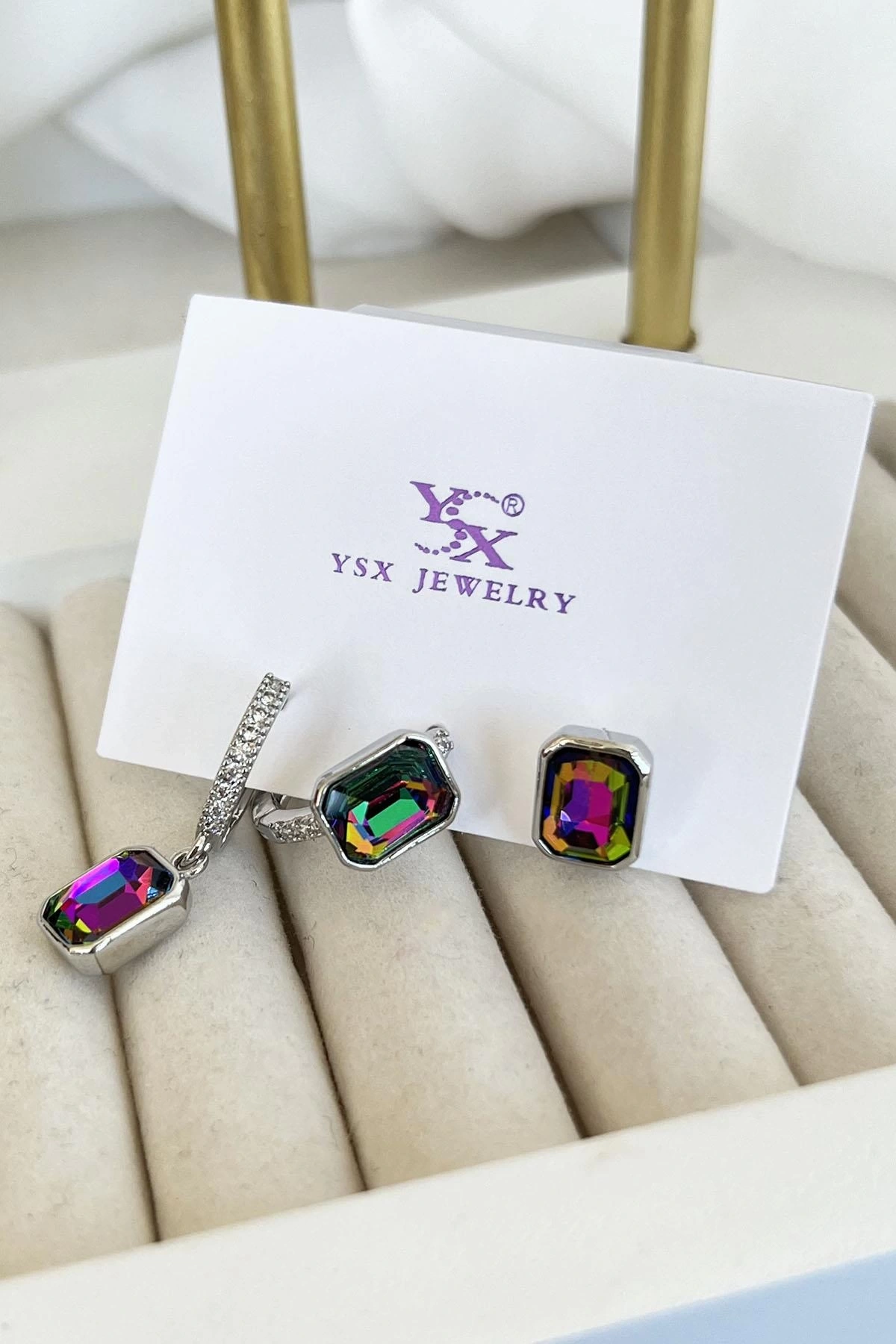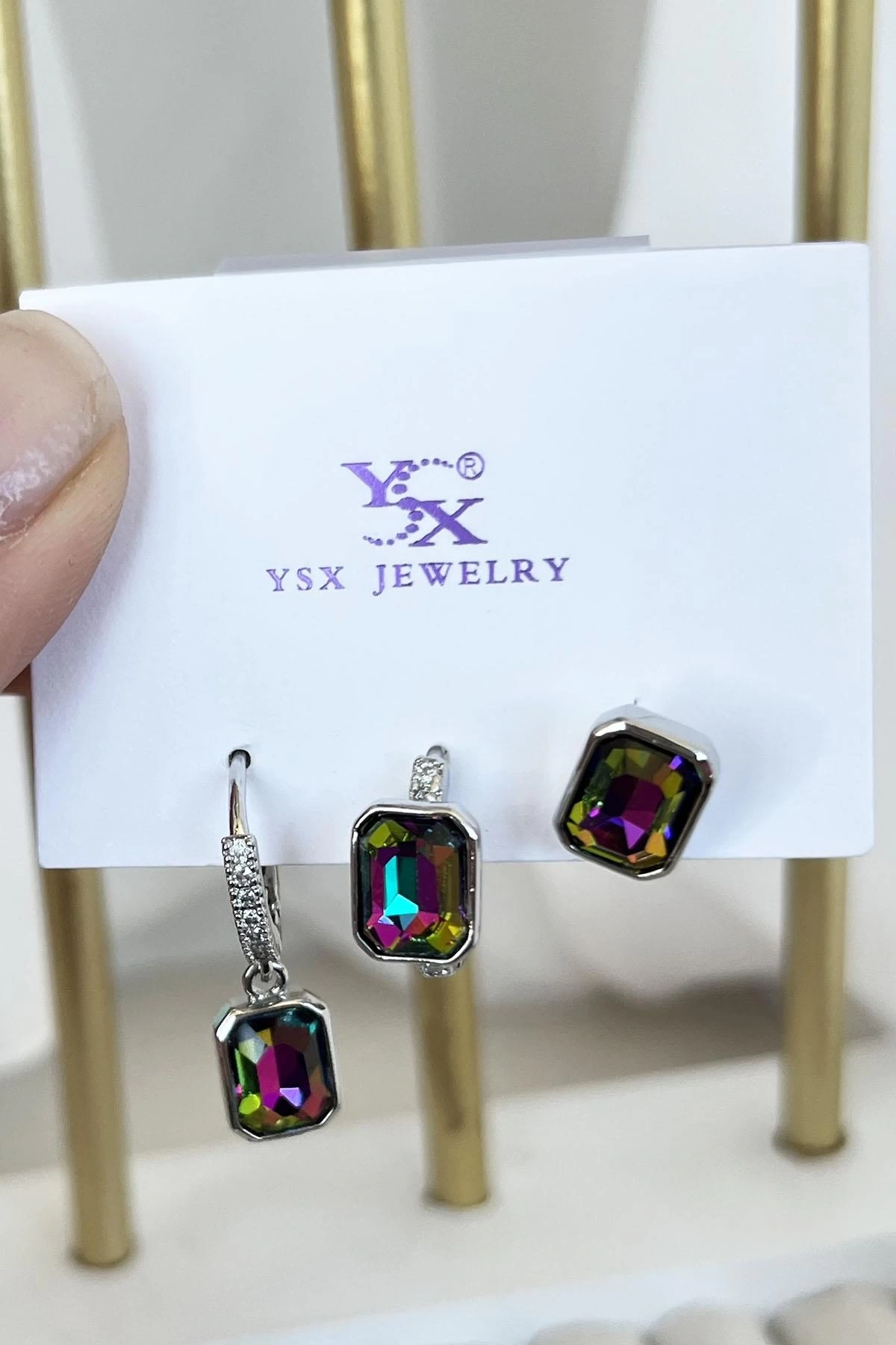 Gümüş Renk Taş Detaylı VİP 3'lü YSX Küpe Set