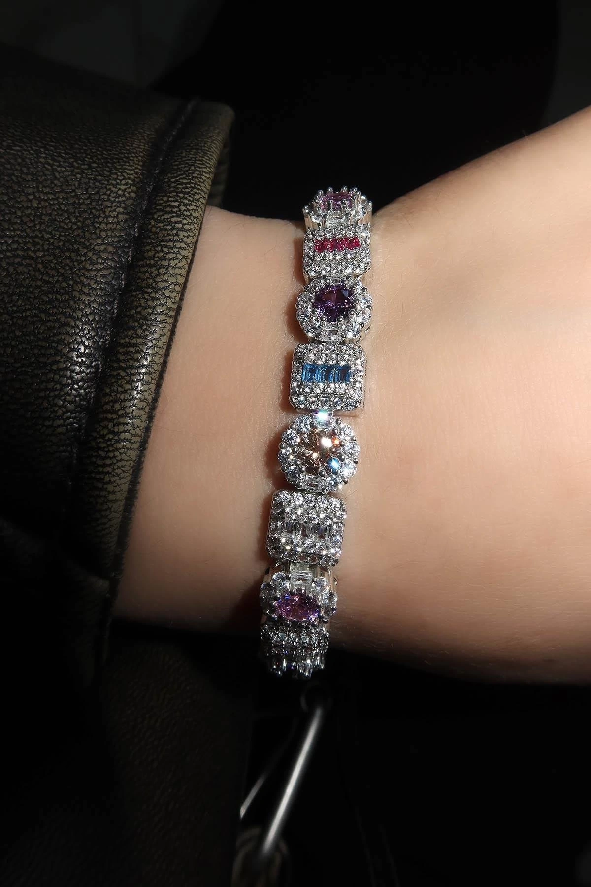 Gümüş Renk Taş Detaylı VİP Bileklik