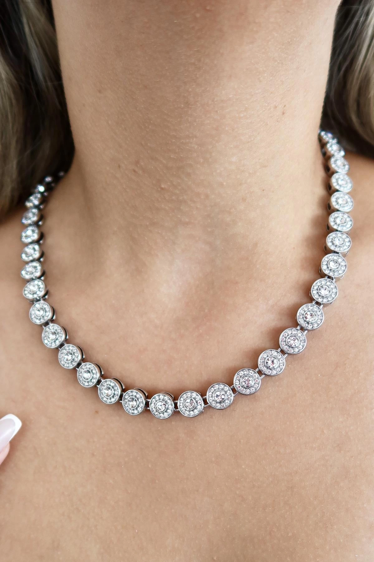 Gümüş Renk Taş Detaylı VİP Tasarım Kolye