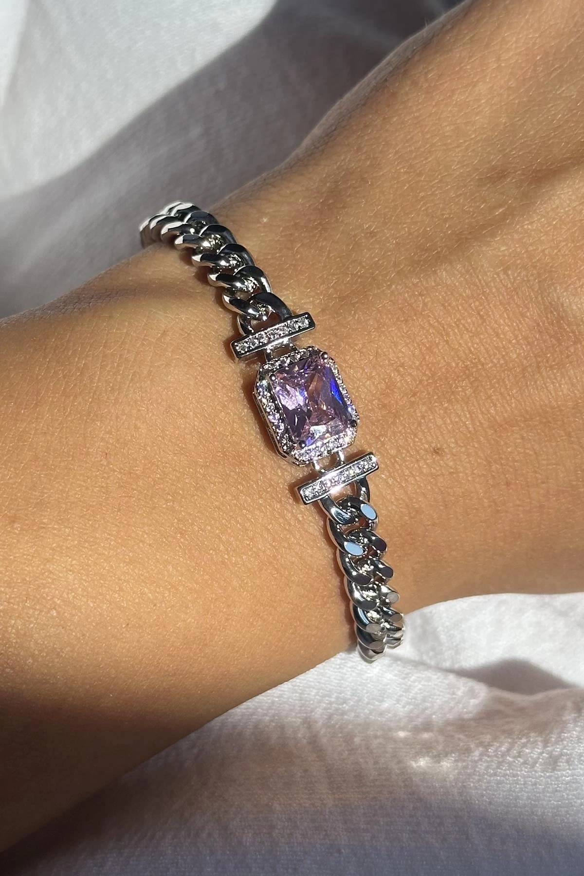 Gümüş Renk Taş Detaylı VİP YSX Bileklik