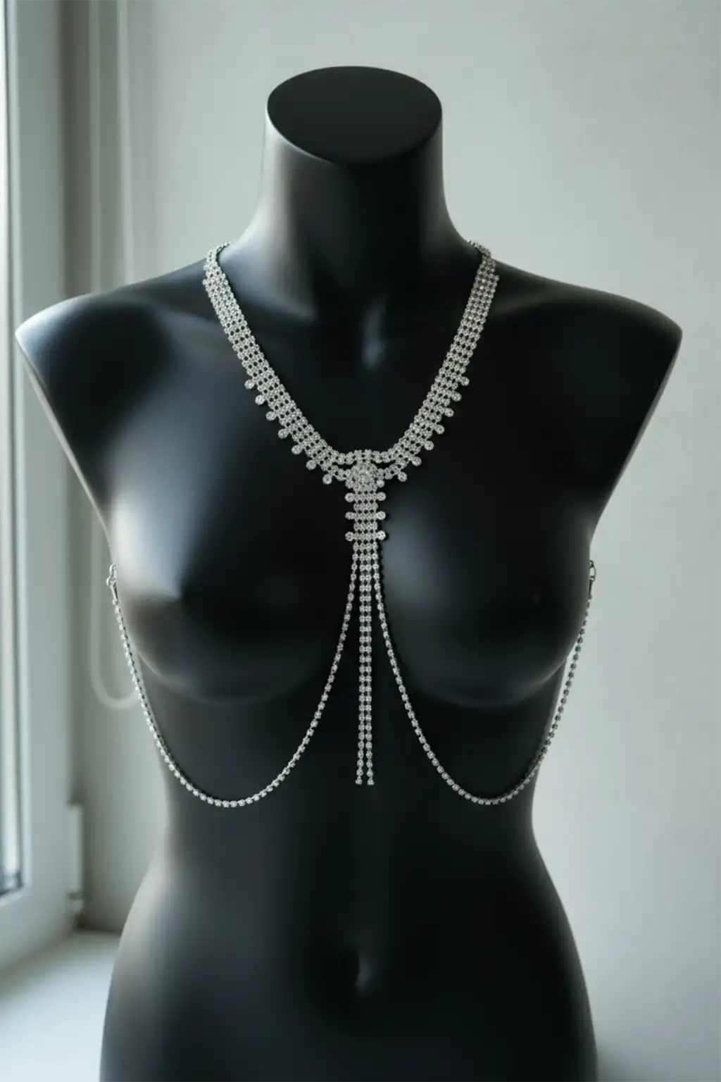 Gümüş Renk Taş Detaylı Vücut Aksesuarı
